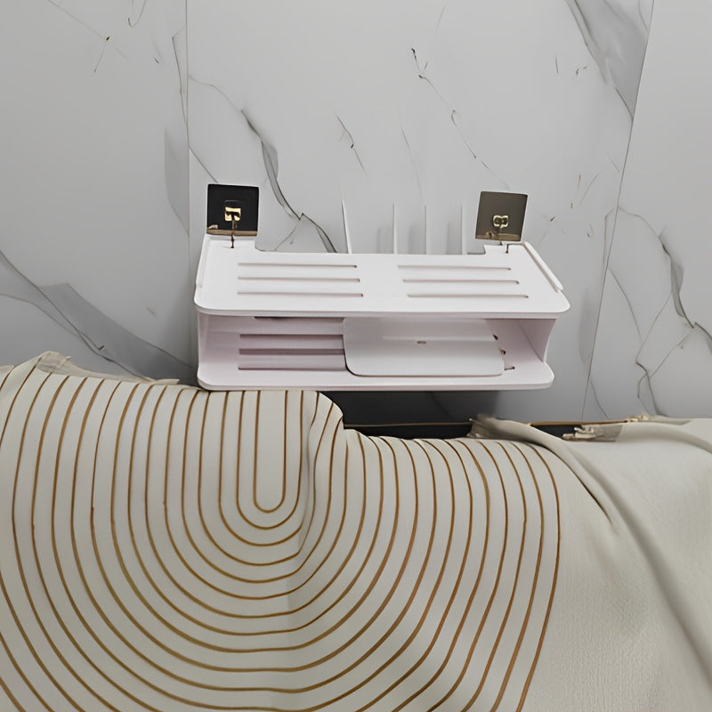 1 dona devorga o'rnatiladigan javon, burg'ulashni talab qilmaydigan, routerlar va televizor qutichalarini tartibga solish uchun PP materialidan tayyorlangan, joyni tejaydigan saqlash yechimini taqdim etadi.