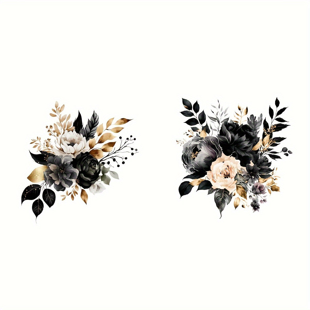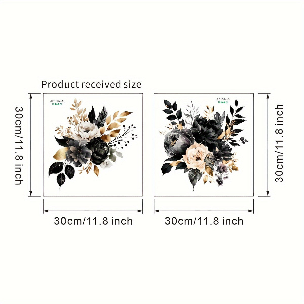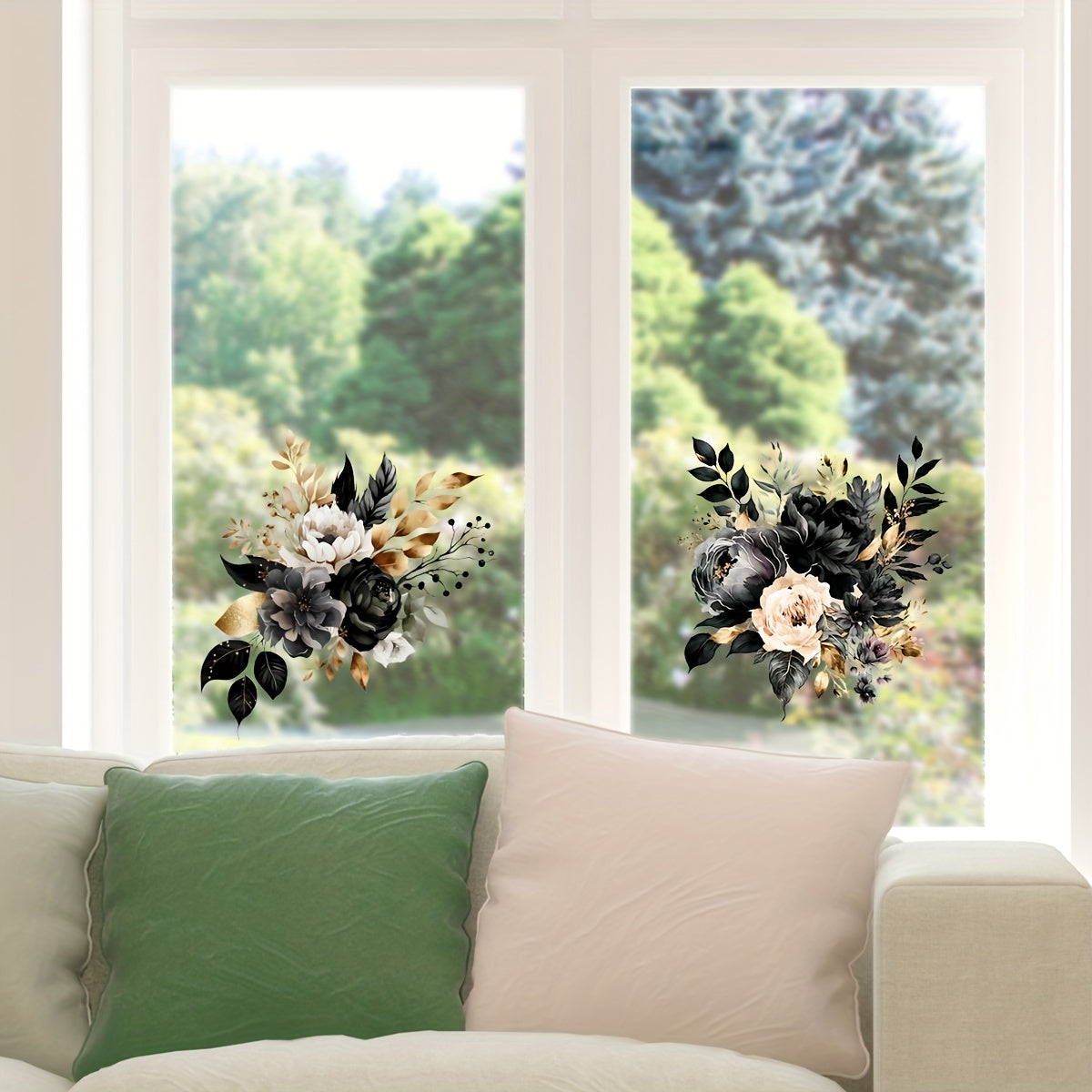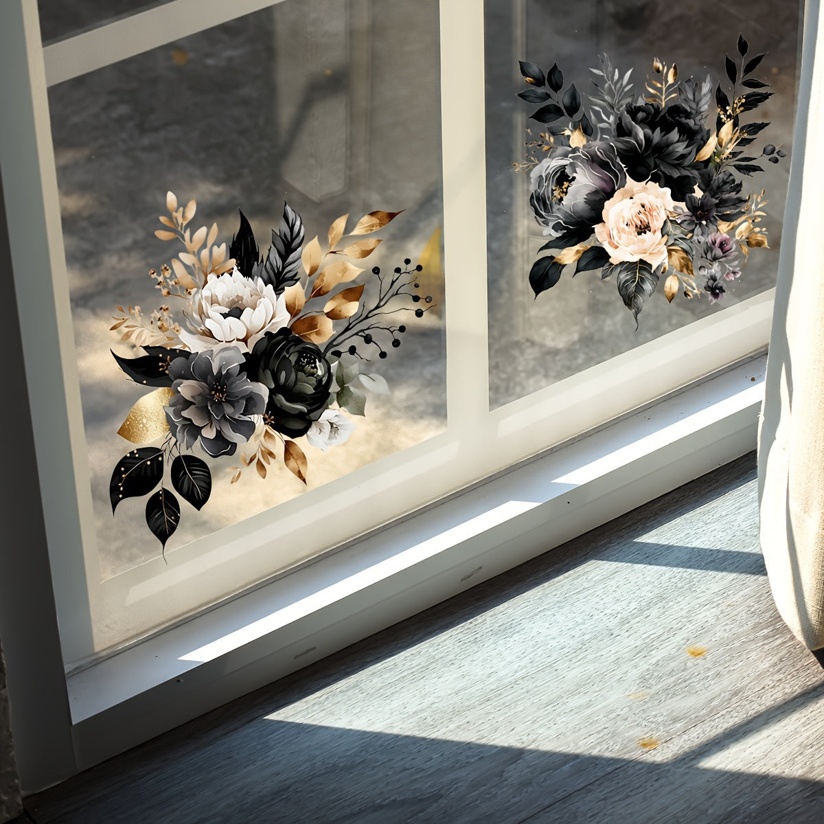 2 Ta'sirli Gullarli Deraza Qoplamalari Zamonaviy Qora va Oltin PVC - Bezakli Shisha Dekoratsiyalari, O'z-o'zidan yopishqoq va olib tashlanadigan Stikerlar Uy va Ofis Derazalarida Ko'rsatish uchun, Deraza Bezaklari
