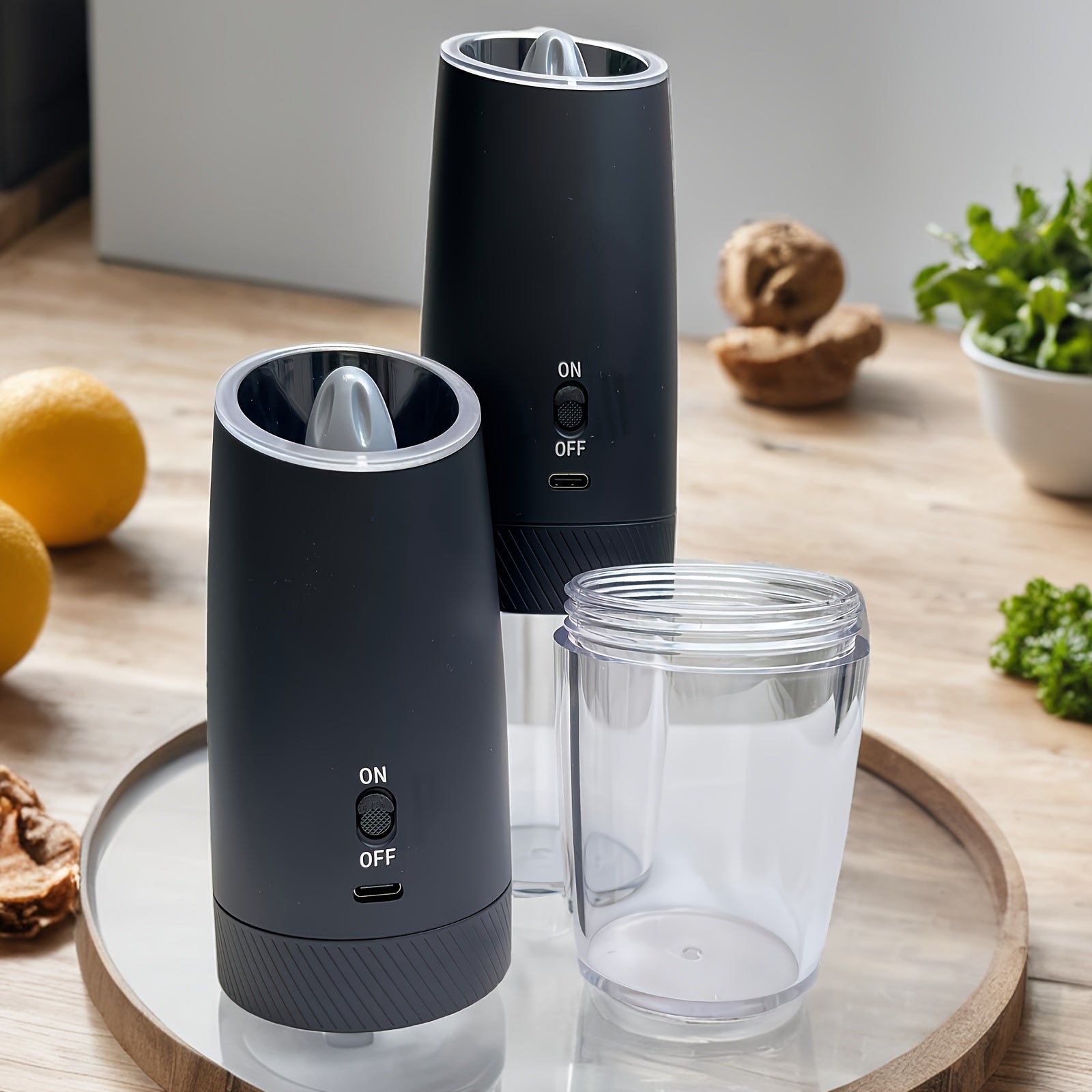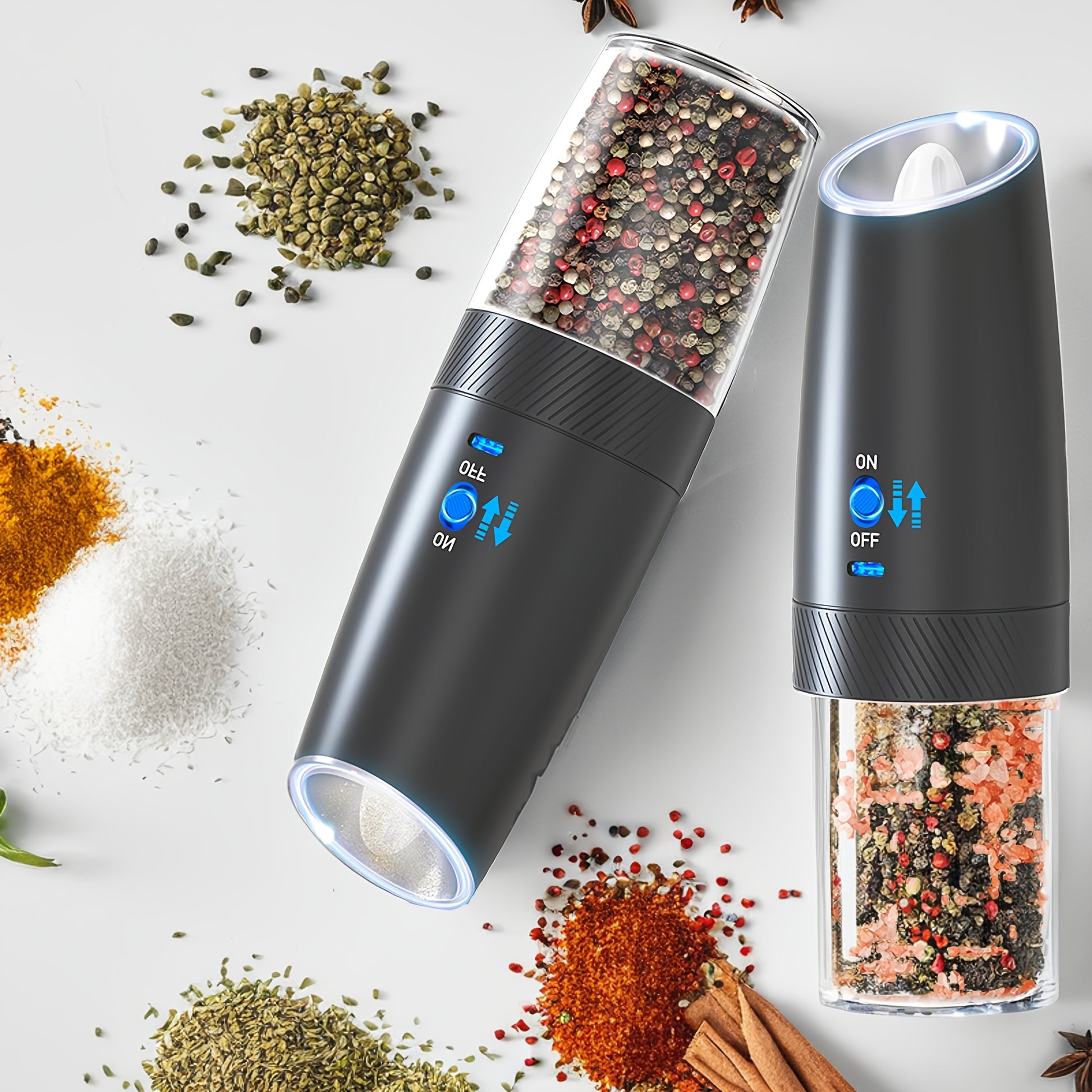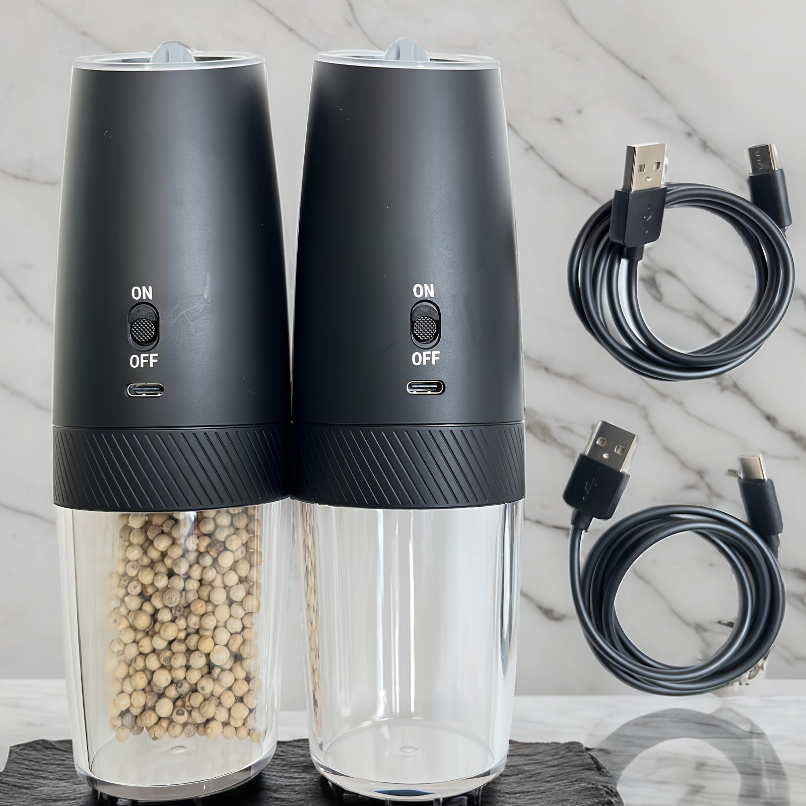 2-to'plamli qayta tiklanadigan elektr qalampir va tuz maydalagich to'plami, tortishish bilan sezgir LED chiroq, USB zaryadlash, 5000 RPM