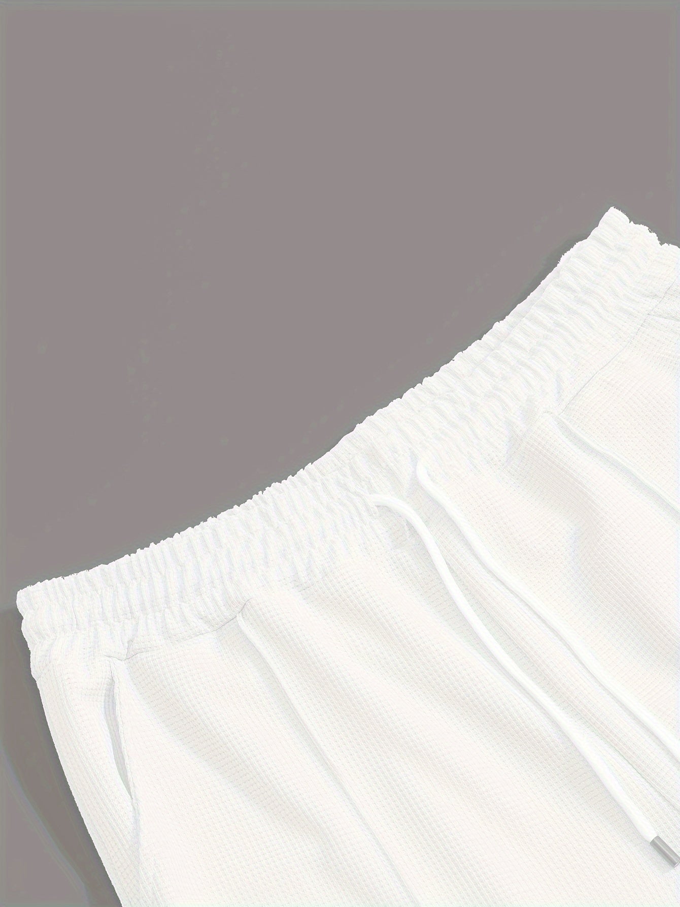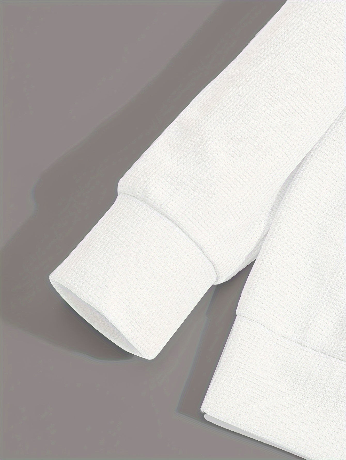 2-qismli Erkaklar Vafli To'qima Tasodifiy Kiyim: Qattiq Oq Uzun Qol Ochiq Kardiqan & Chizg'ichli Shimlar To'plami. Kundalik kiyish yoki bahor/kovakda ta'til uchun mukammal qulay polyester aralashmasi.