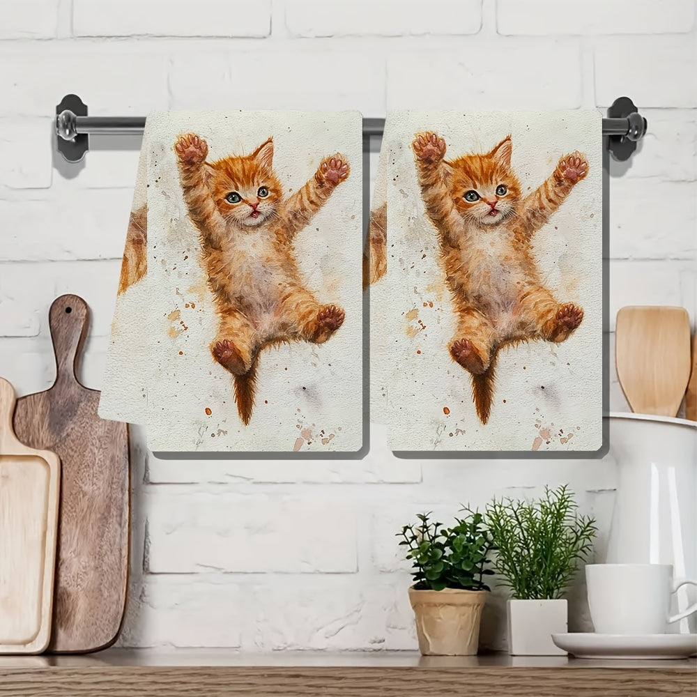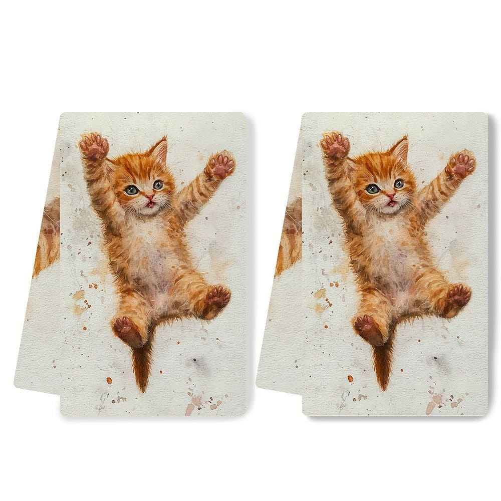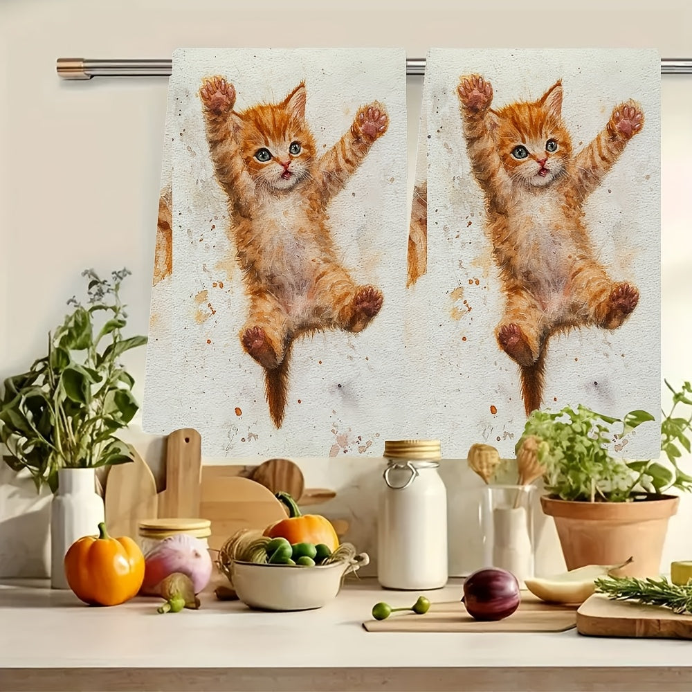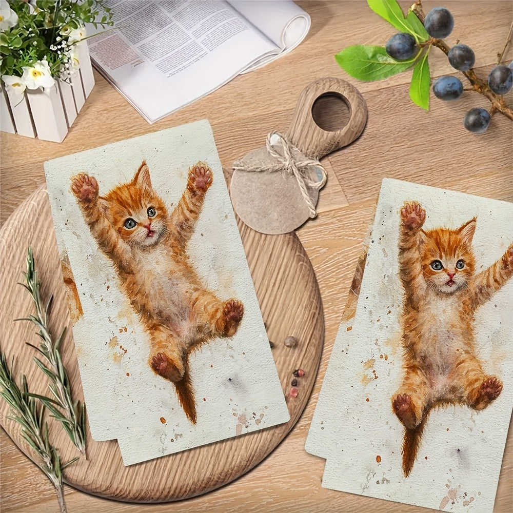 2 dona oshxona sochiqlari, apelsin mushuk dizayni, yutuvchi, mashina yuviladigan, 40x60 sm