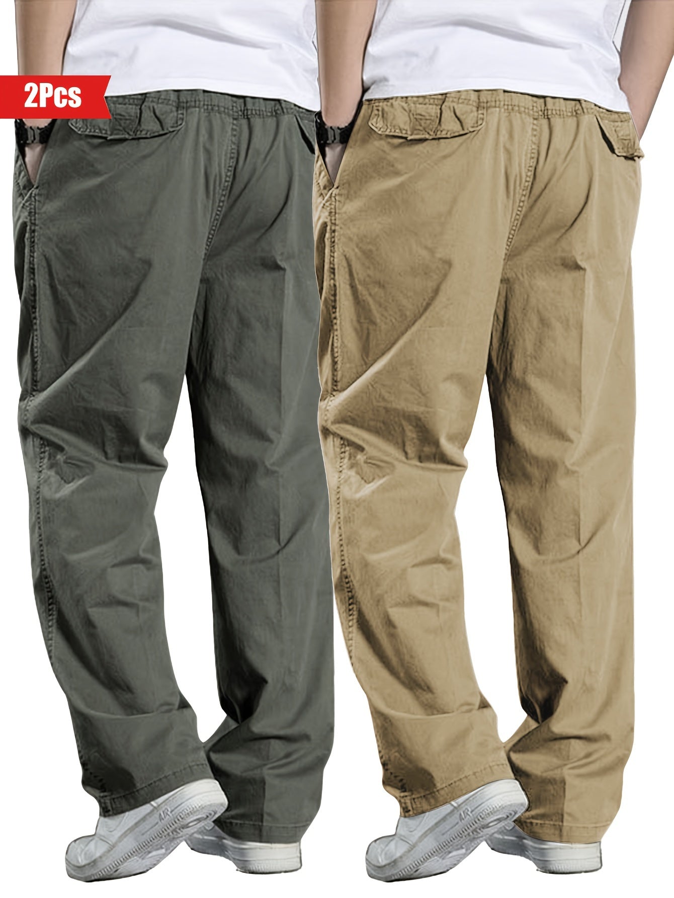 2 ta sof paxta erkaklar uchun tasodifiy shim, bir xil rangda, ochiq havoda kiyish uchun mos.