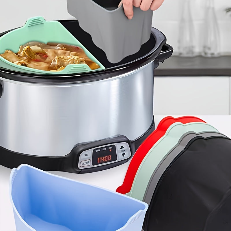 Qayta ishlatiladigan silikon sekin pishirish qoplami, 6-7 kvartlik oval pishirish uchun buklanuvchi bo‘linmalar bilan, osmon rangli, qizil, qora