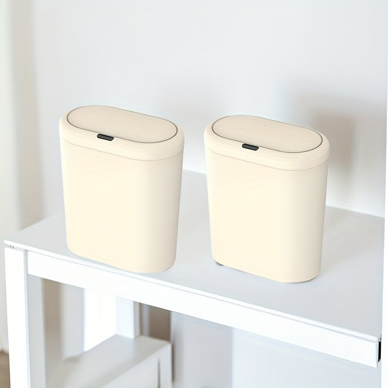 2 Aqlli induksiya axlat qutilari, avtomatik ochiladigan qopqoq, namlikka chidamli plastmassa, uy va yotoqxona uchun