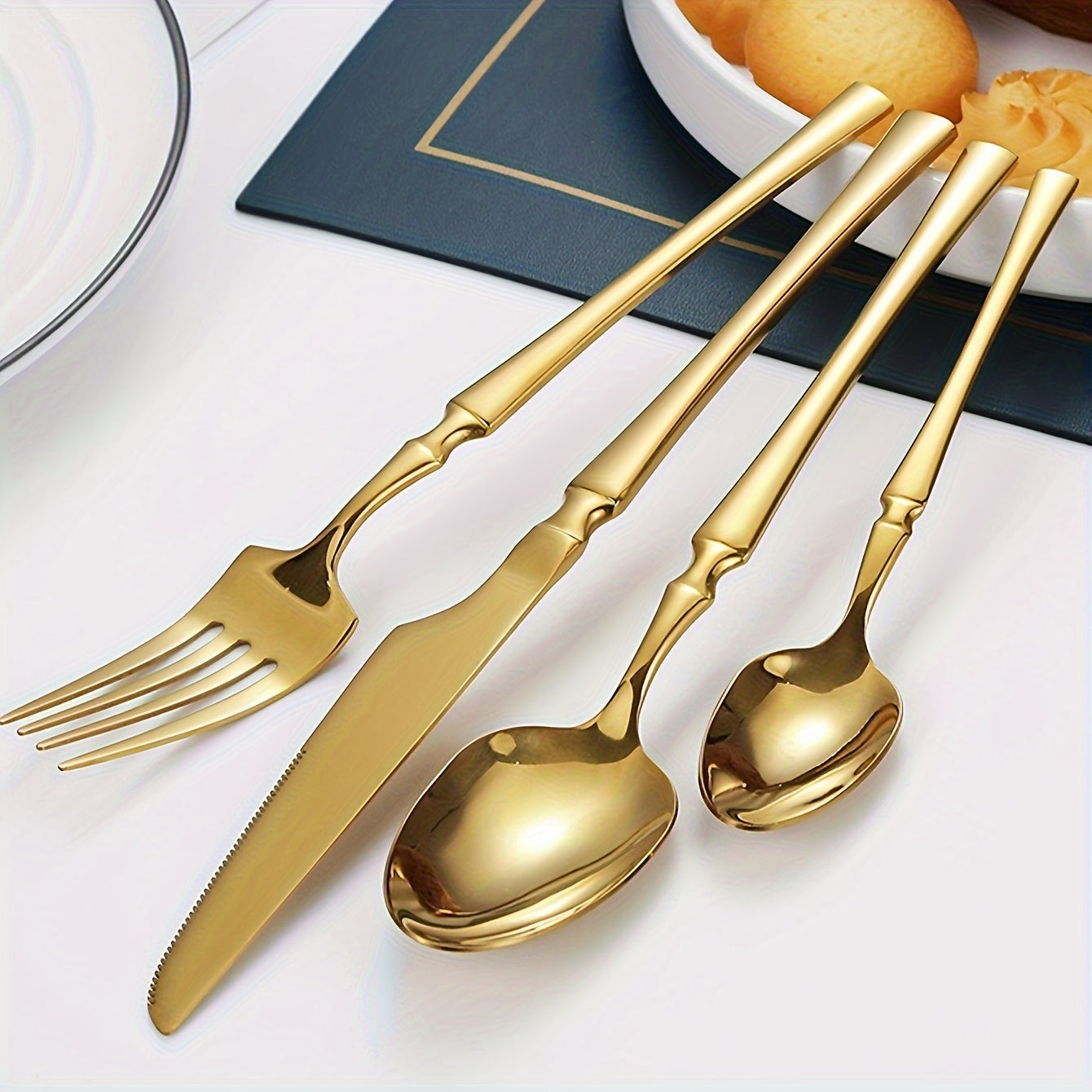 20/30 dona rostlangan po'latdan tayyorlangan stol to'plami, vilkalar, qoshiq, shirinlik qoshiq, meva vilkasi va pichoq, oltin rang, uy, restoran, mehmonxona, to'y, partiyaga mo'ljallangan