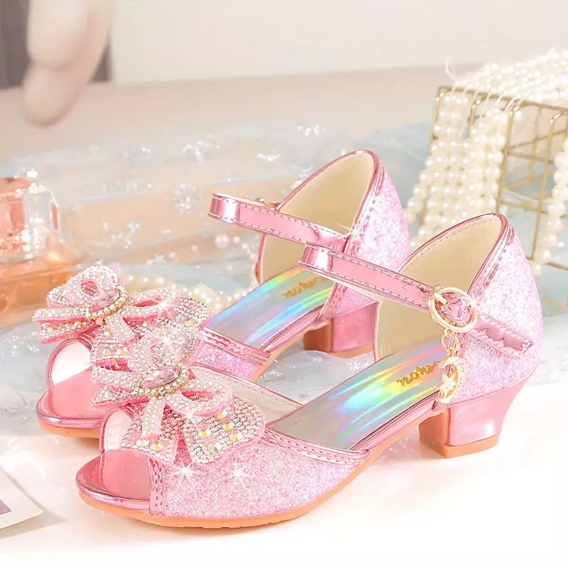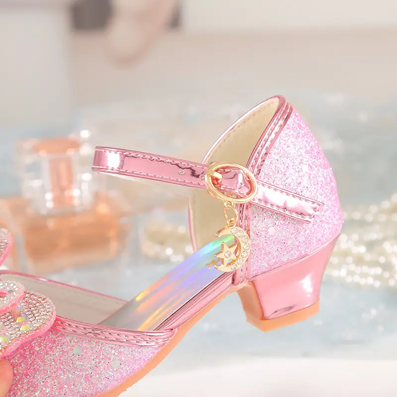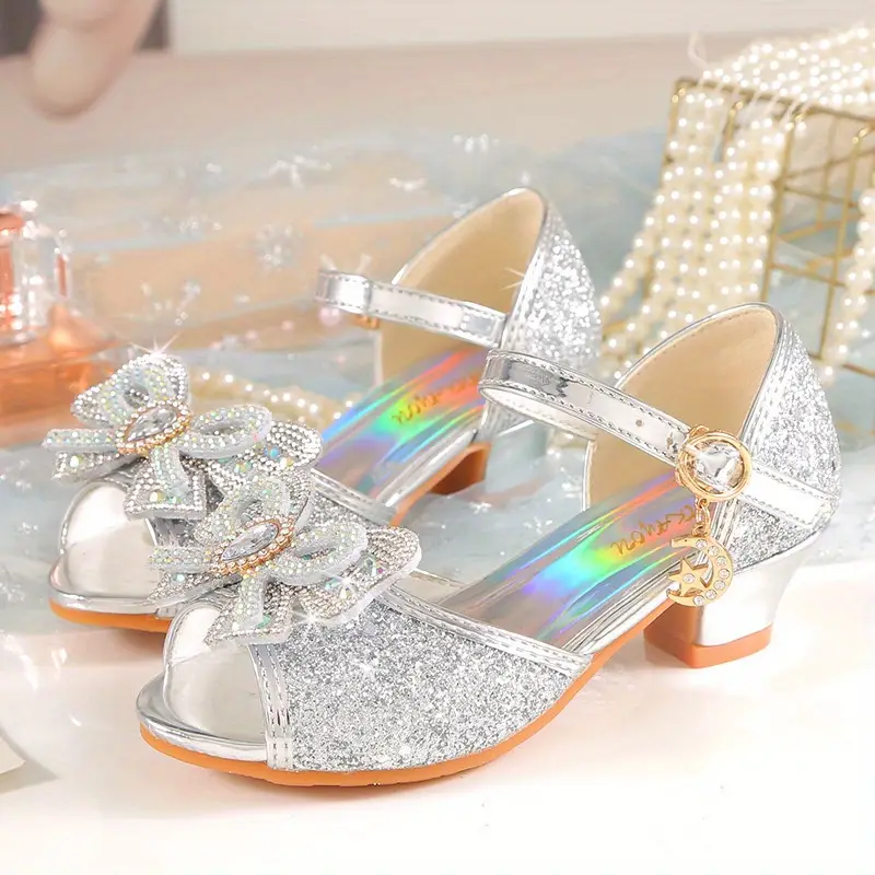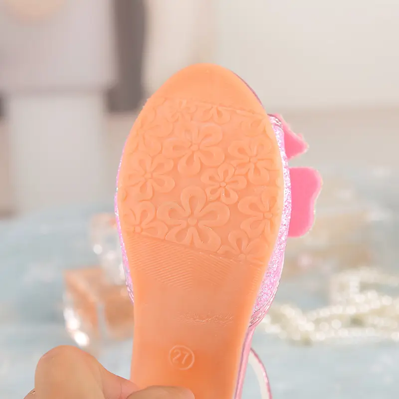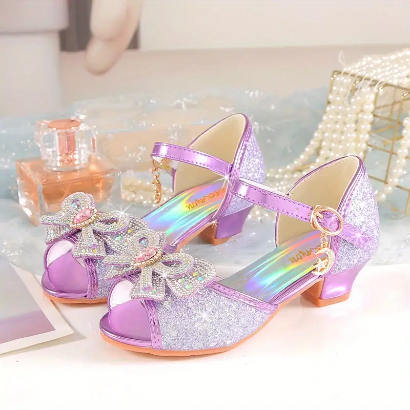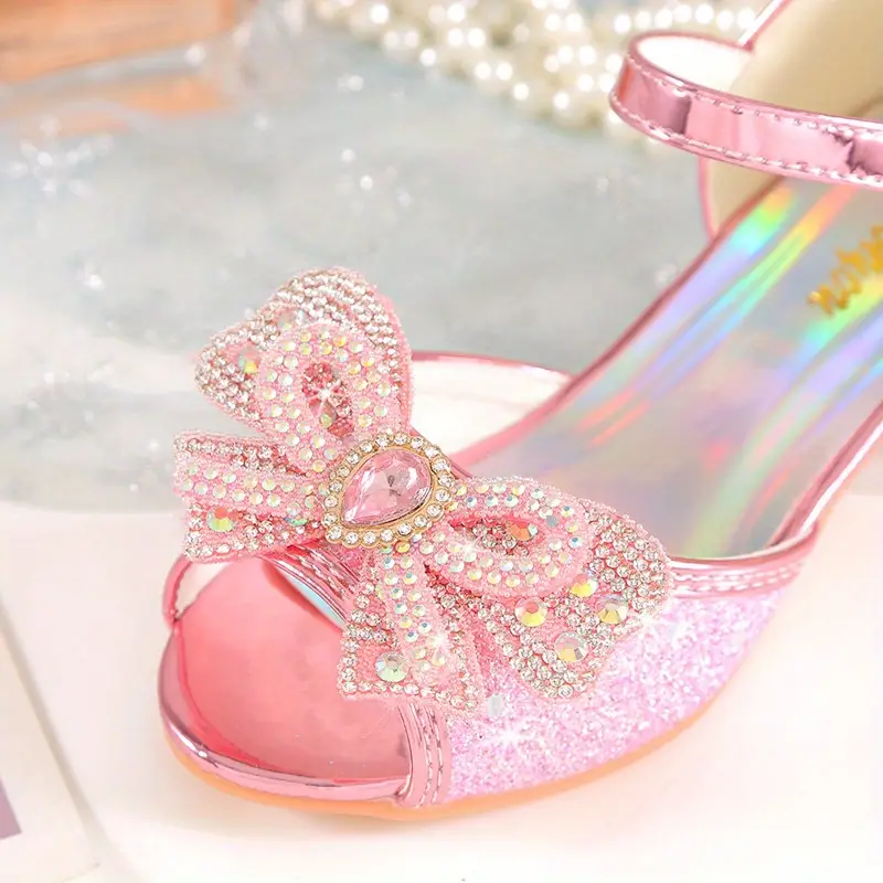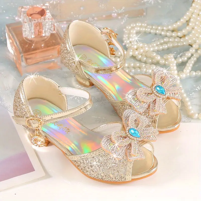 2024 Yangi Uslub Elsa Rhinestone Sandallar Qizlar Uchun, Kristal Yuqori Poshnalar, Bolalar Uchun Zamonaviy Yozgi Malika Poyabzallari. 2024 New Style Elsa Rhinestone Sandals for Girls, Crystal High Heels