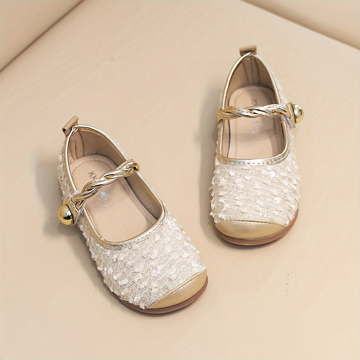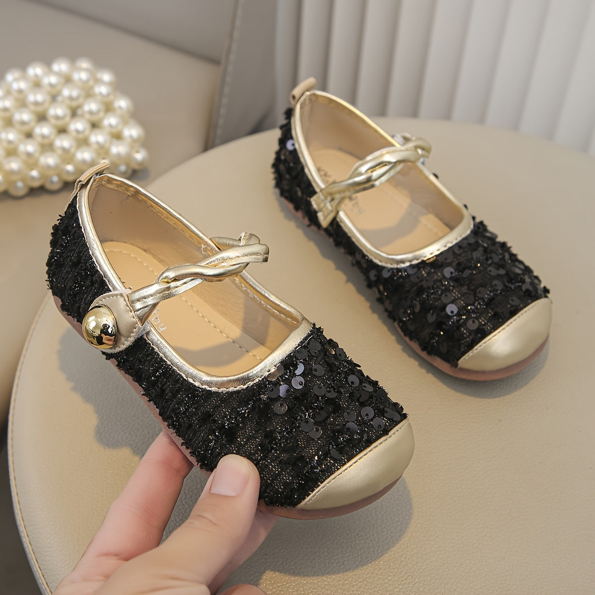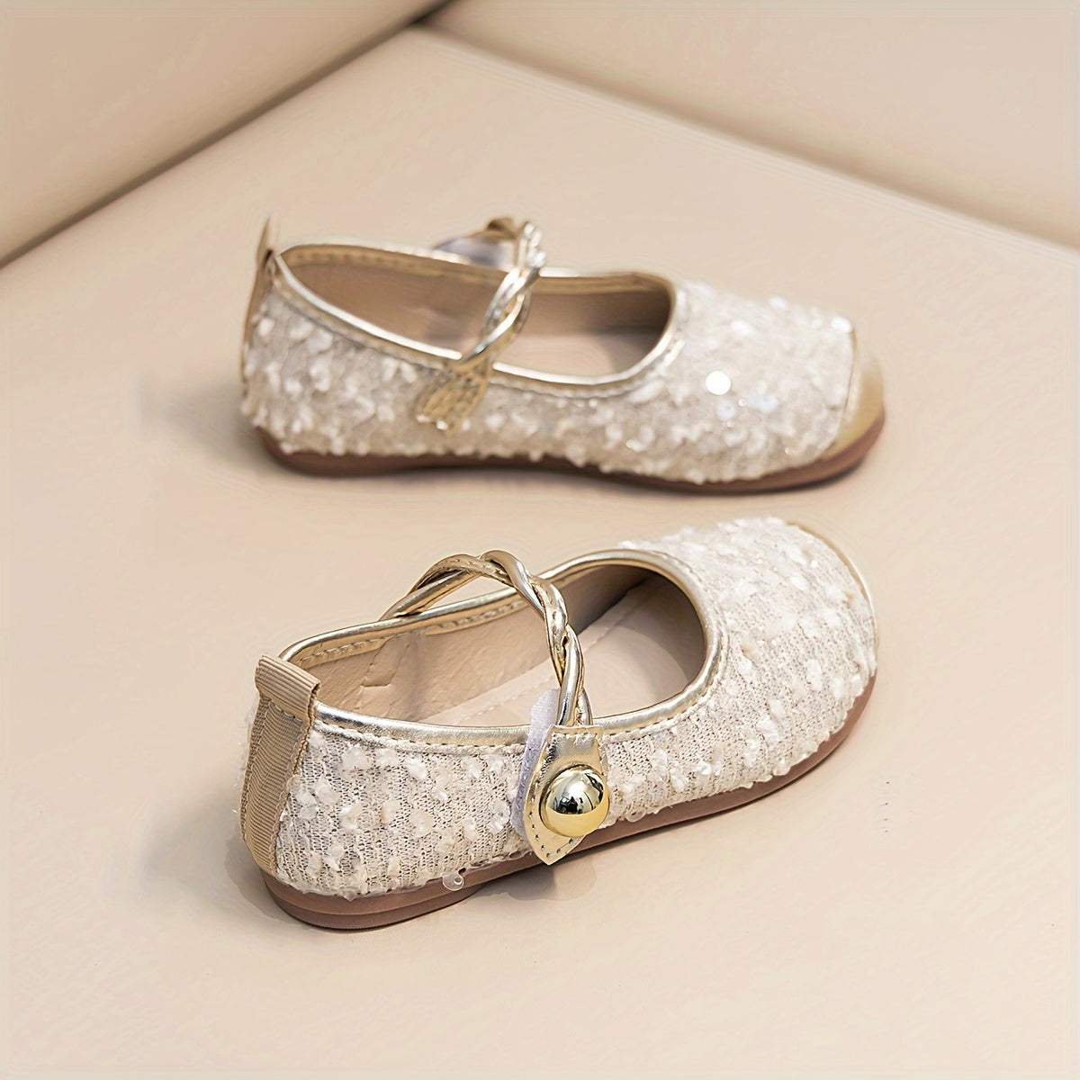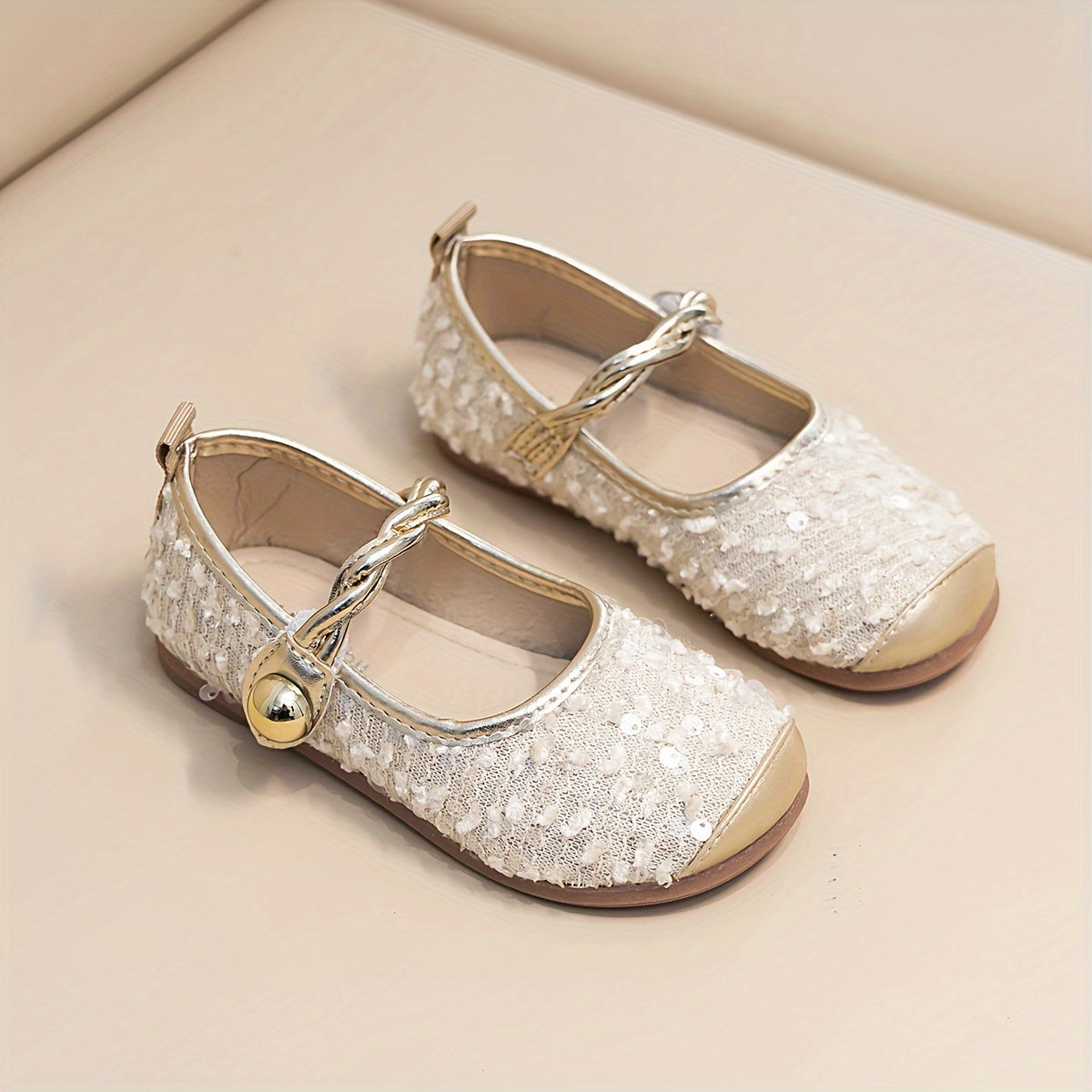 2024 Bahor/Yoz Frantsuz Payetli Qizlar Prenses Poyabzallari - Janubiy Koreya uslubidagi Mary Jane poyabzallari yumshoq PU taglik bilan. 14 yoshgacha bo'lgan bolalar uchun moslashuvchan tasma yopilishi.