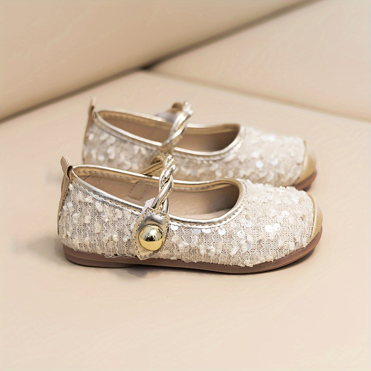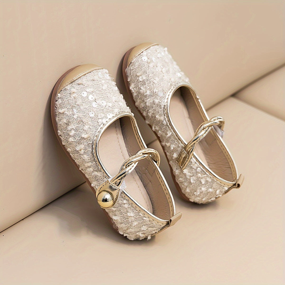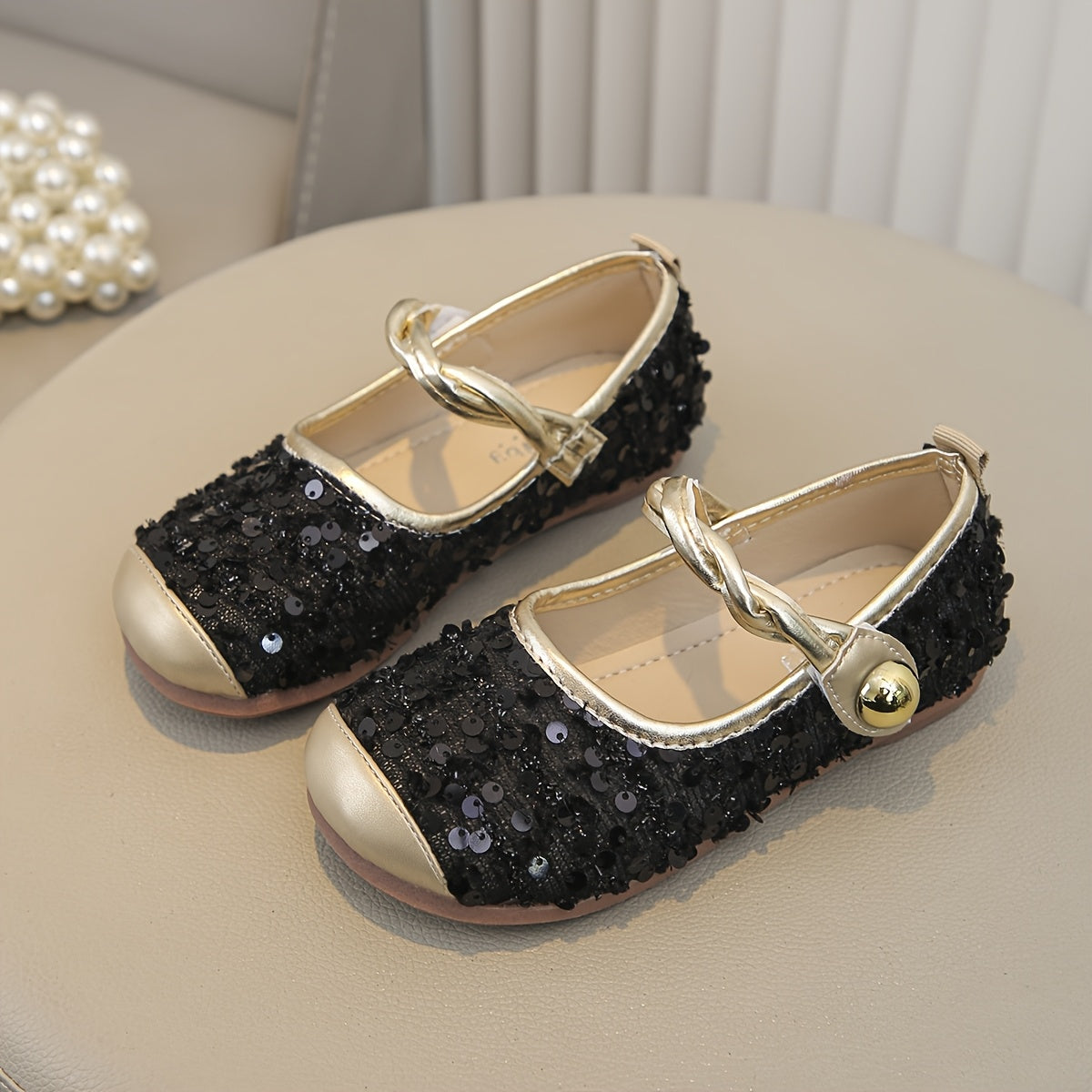 2024 Bahor/Yoz Frantsuz Payetli Qizlar Prenses Poyabzallari - Janubiy Koreya uslubidagi Mary Jane poyabzallari yumshoq PU taglik bilan. 14 yoshgacha bo'lgan bolalar uchun moslashuvchan tasma yopilishi.