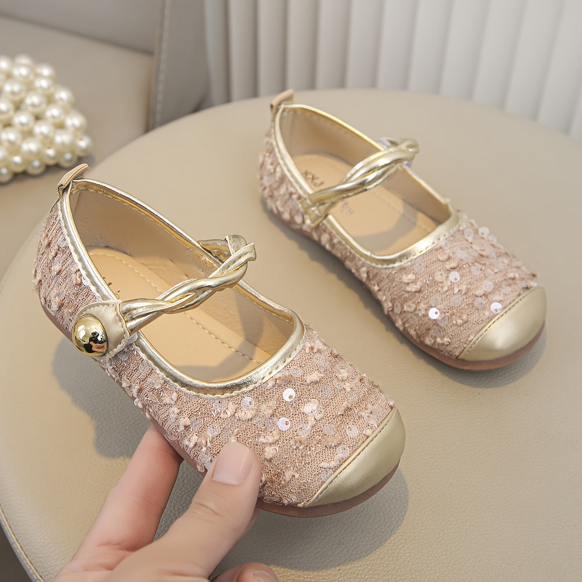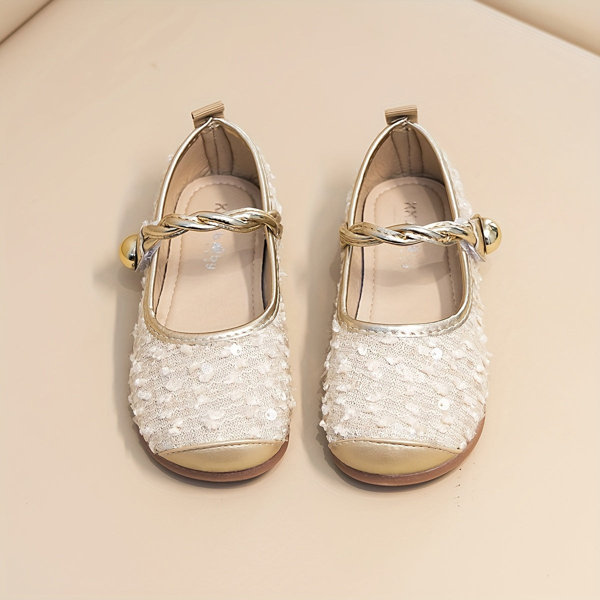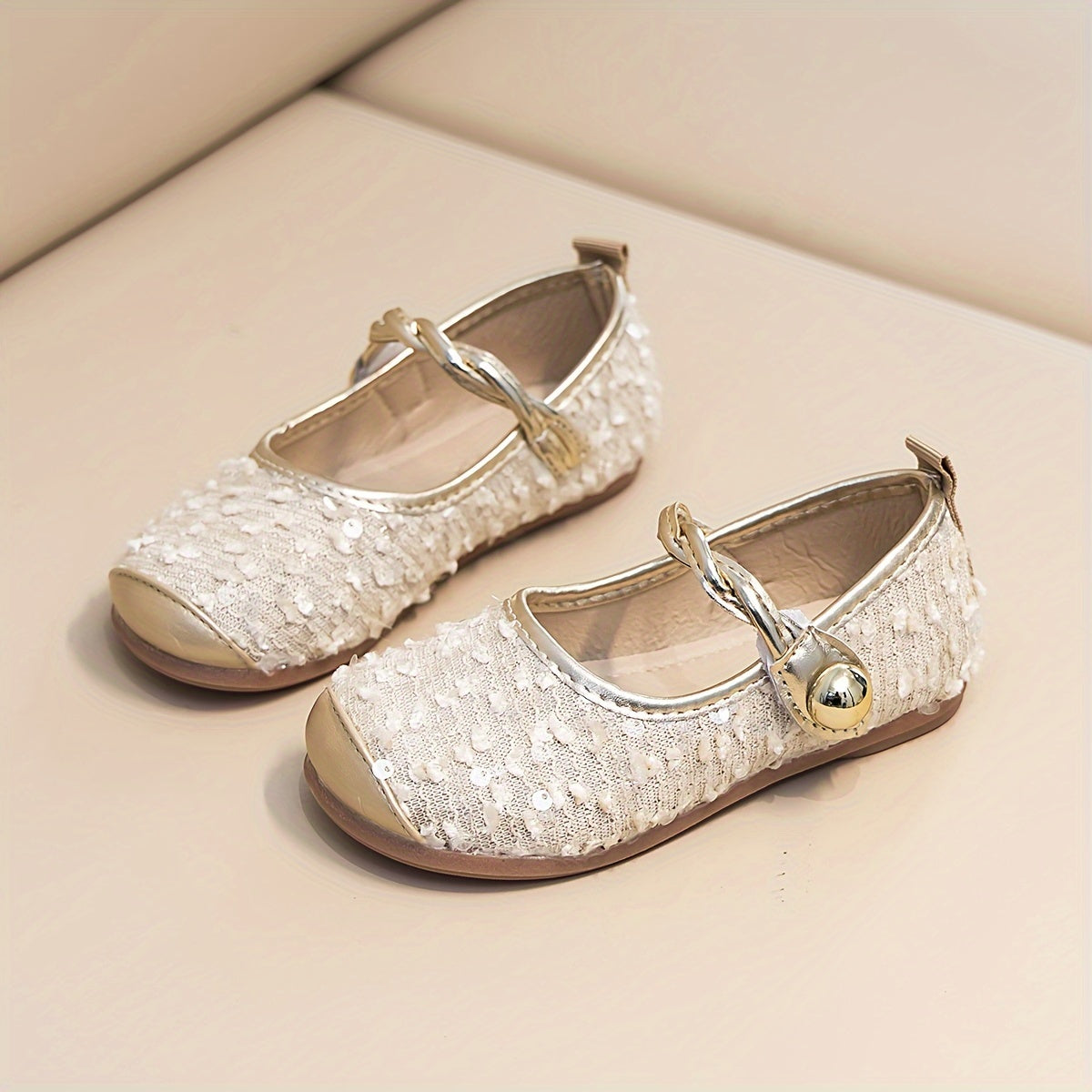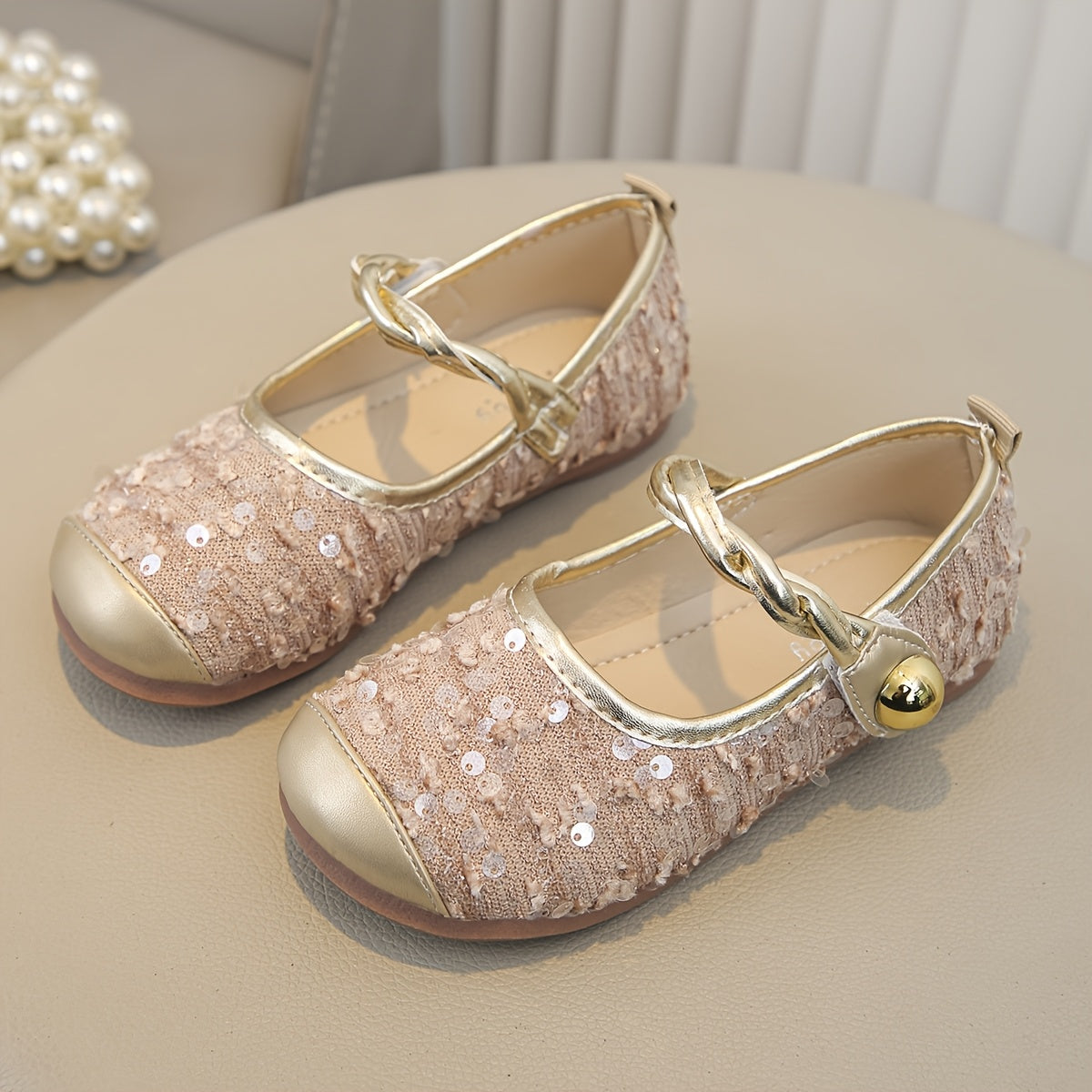 2024 Bahor/Yoz Frantsuz Payetli Qizlar Prenses Poyabzallari - Janubiy Koreya uslubidagi Mary Jane poyabzallari yumshoq PU taglik bilan. 14 yoshgacha bo'lgan bolalar uchun moslashuvchan tasma yopilishi.