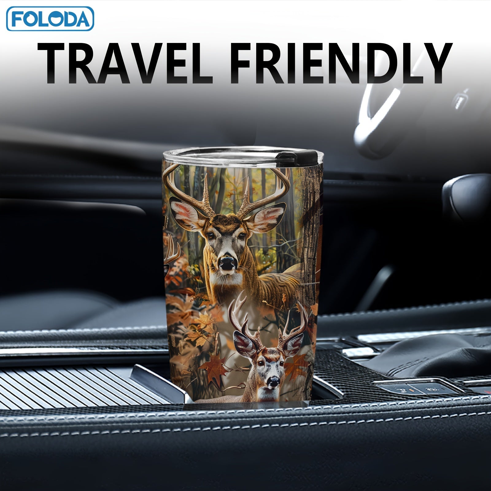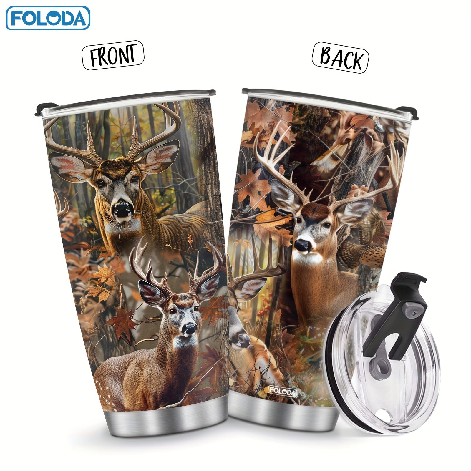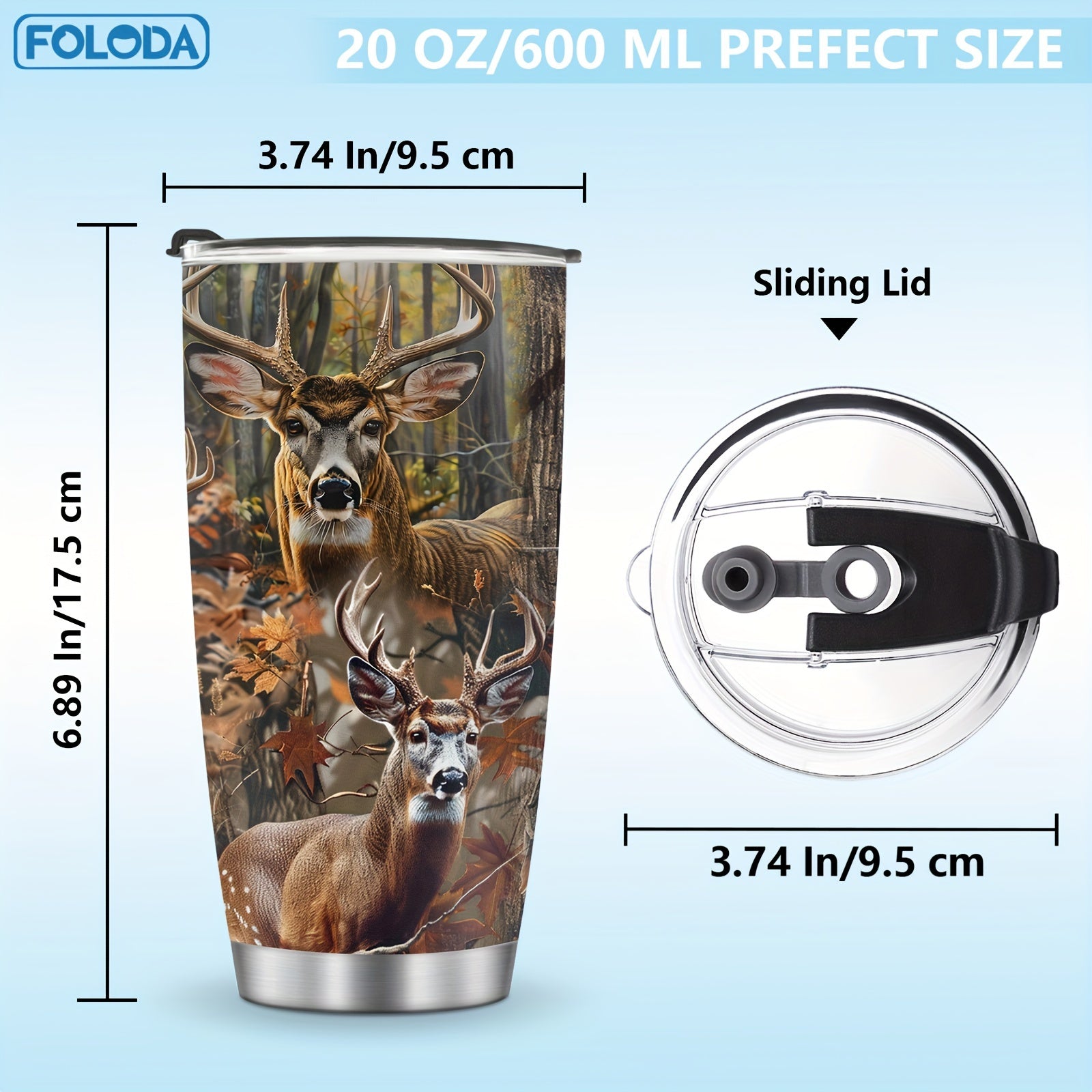 20oz zanglamaydigan po'latdan yasalgan kiyik oviga sayohat mug, qopqoq bilan, kuz o'rmoni dizayni, ovchilar uchun sovg'a, otaga