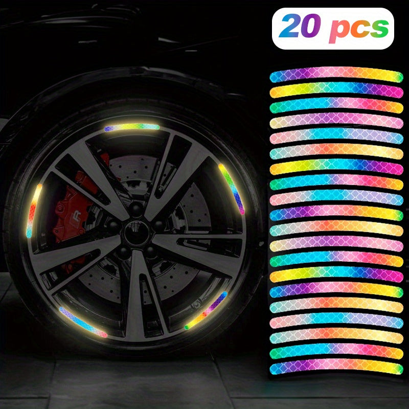 20 dona avtomobil g'ildirak yorituvchi reflektiv stikerlar rang-barang oq kamalak g'ildirak bezaklari