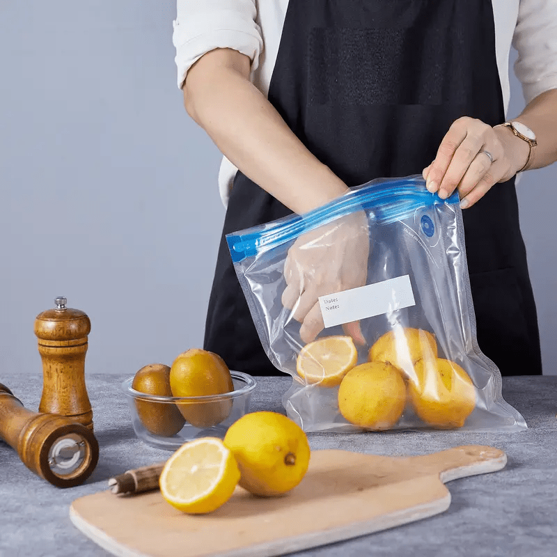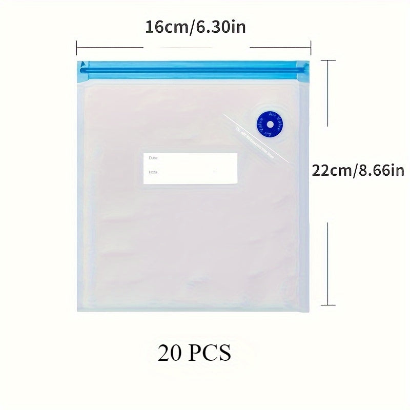 20 dona qayta ishlatiladigan vakuum yopishqoq sumkalar, toza oziq-ovqat saqlash uchun go‘sht, meva, sabzavotlar