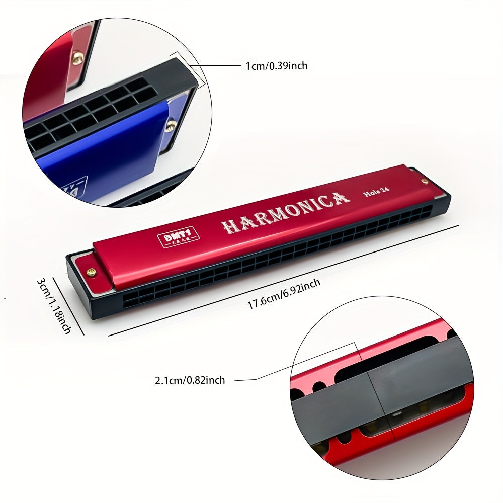 Kattalar uchun 24 teshikli metall harmonika, qutisi bilan, turli ranglarda