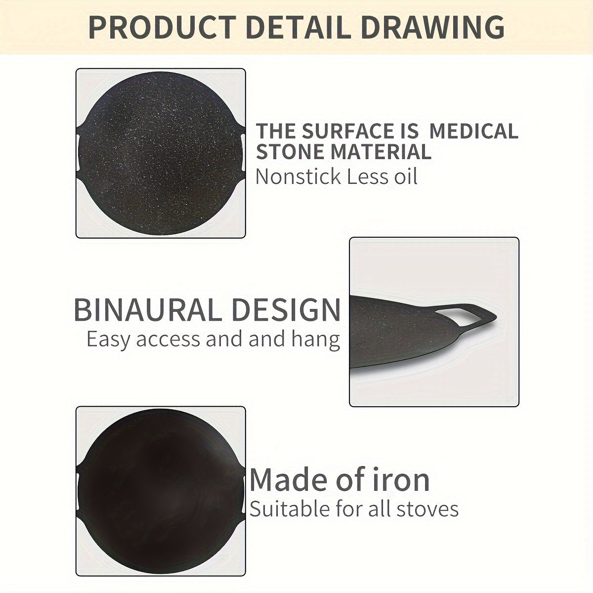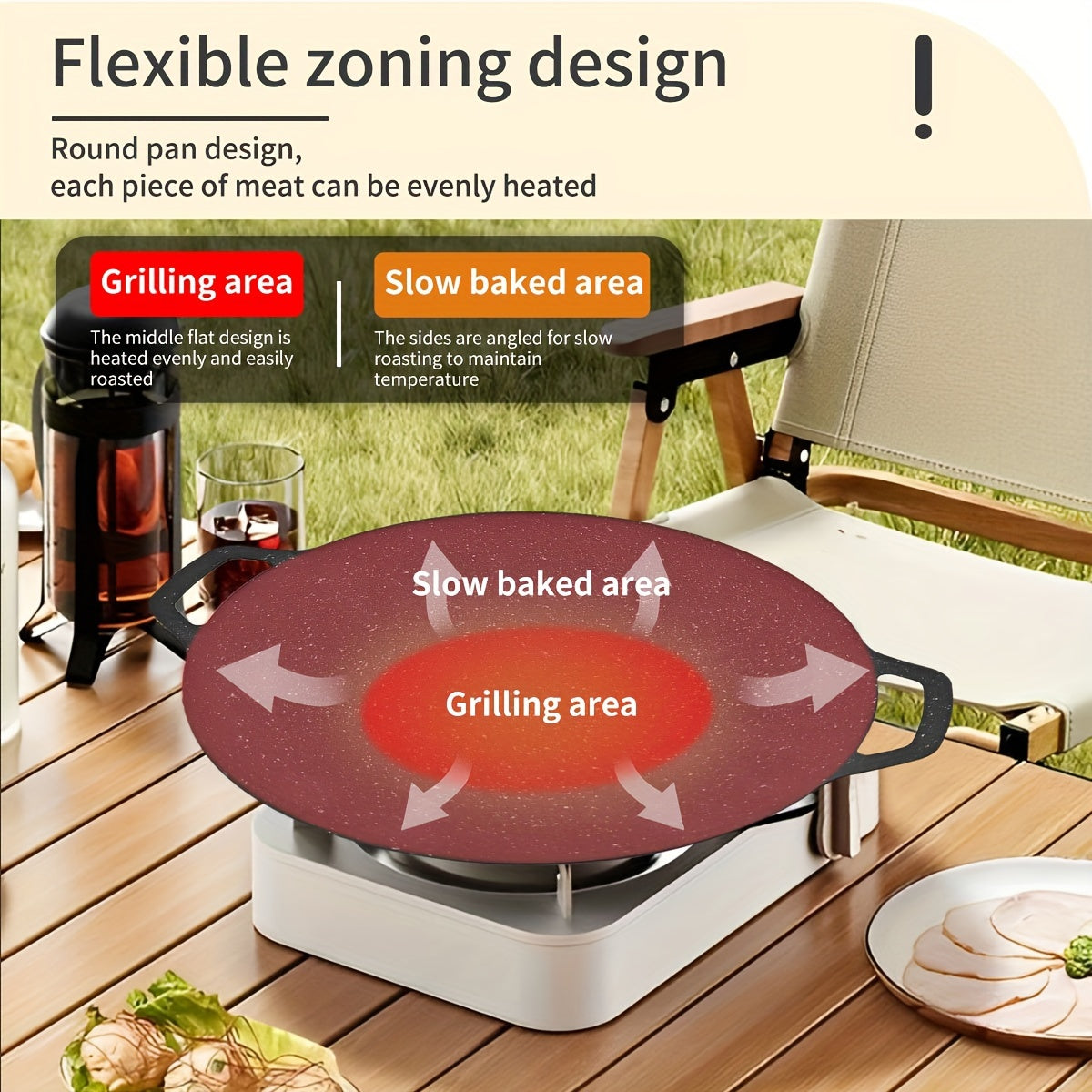 Qalayli qattiq temir BBQ tava 29.97cm, yopishqoq bo'lmagan, tutqichlar bilan, sayohat va uyda pishirish uchun
