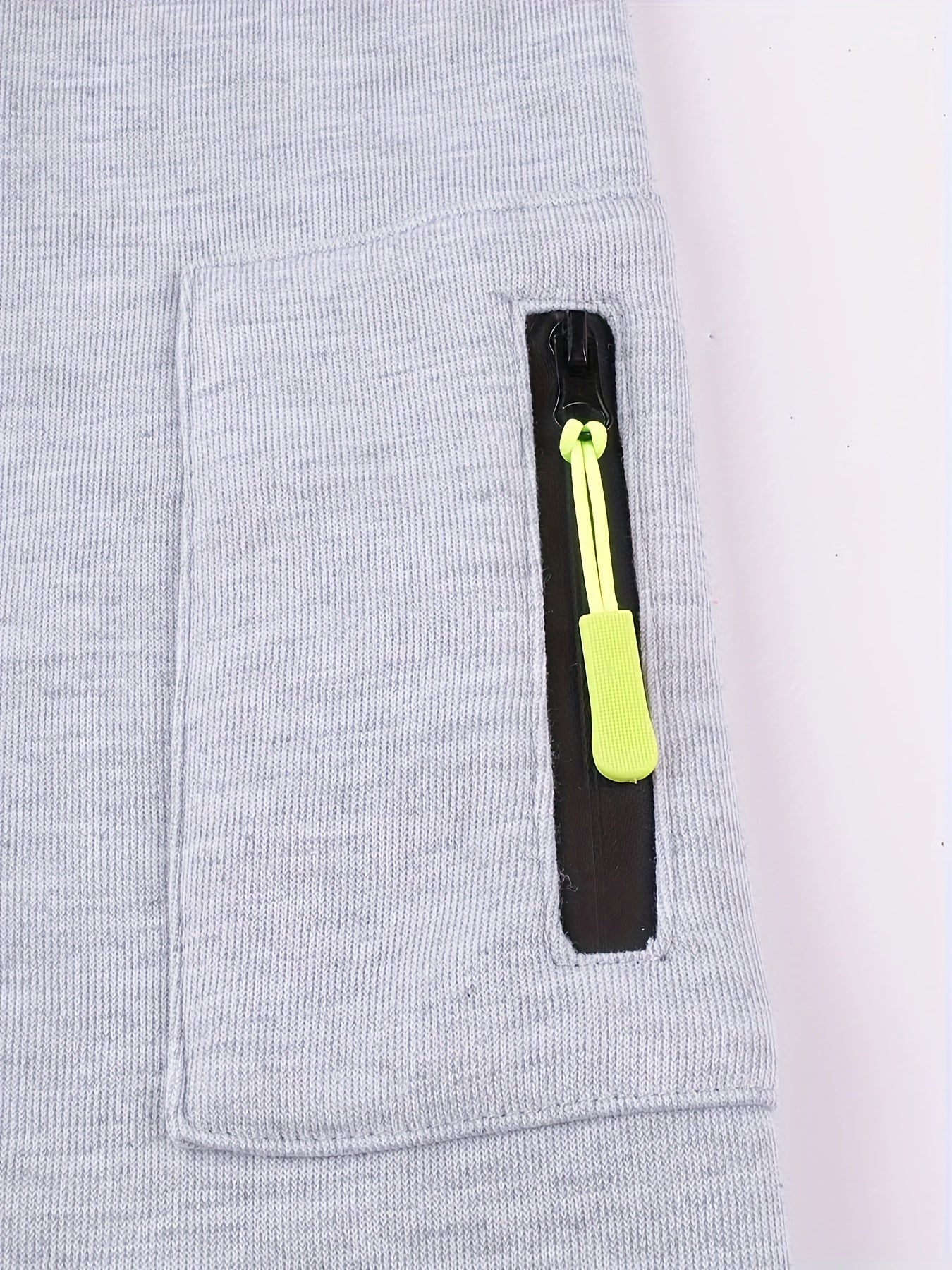 2 dona Erkaklar uchun Tasodifiy Sport Kiyimlar To'plami, kapuchonli pullover va jorjlar bilan, bir xil rangda, ozgina cho'ziladigan, yengil va cho'ntaklari bor. Tog'da yurish, yugurish va sport faoliyatlari uchun mos.