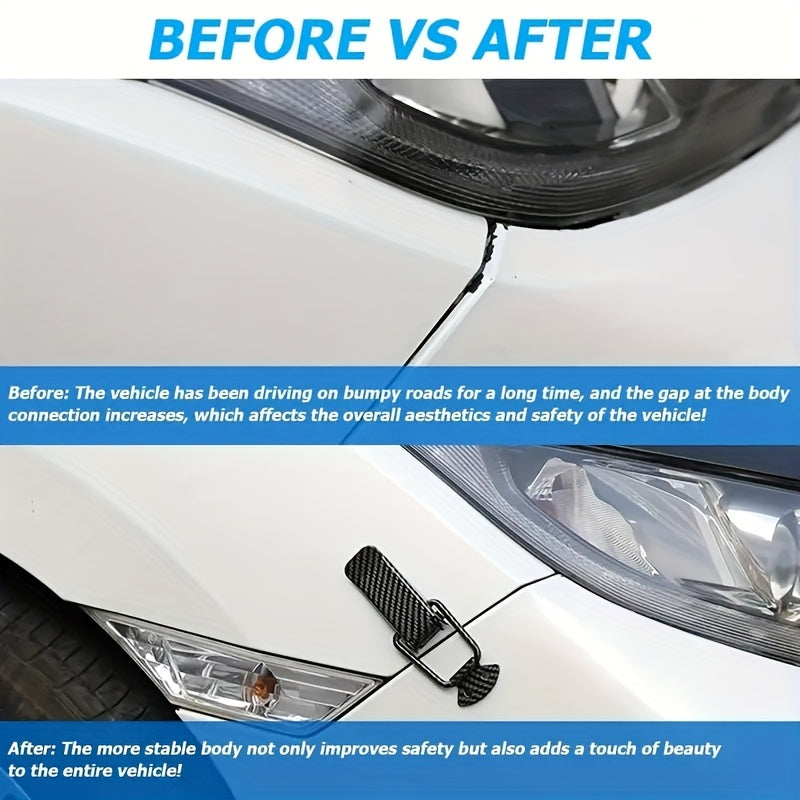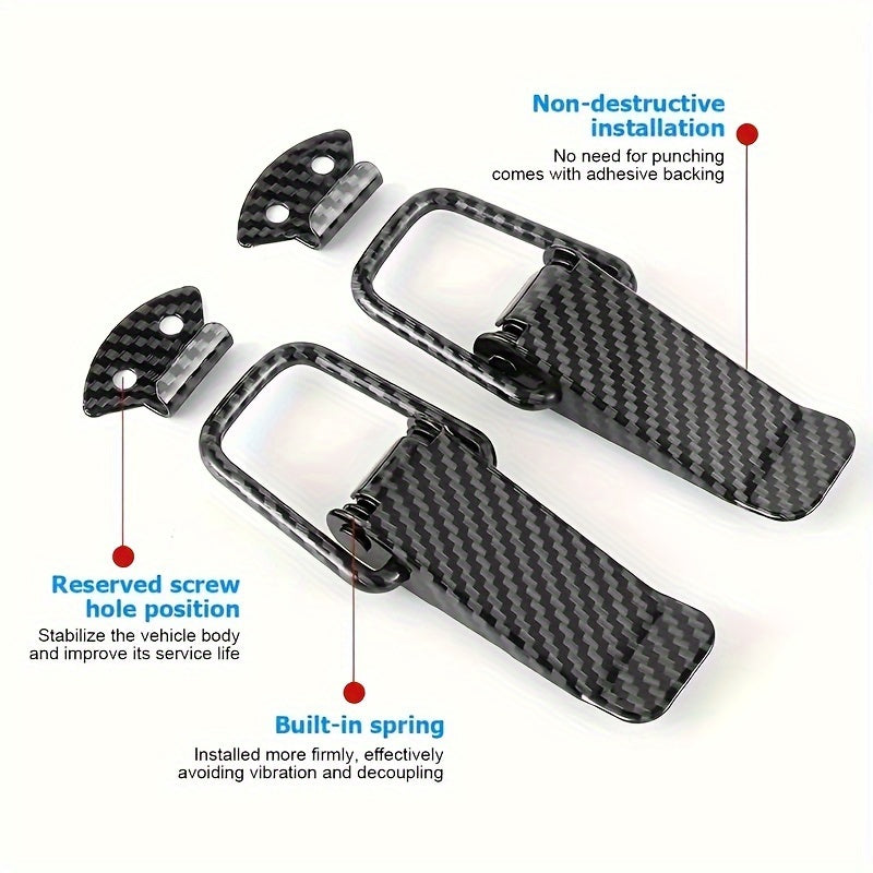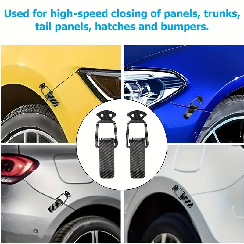 2 dona metallik o'zgaruvchan klamp fastenerlari avtomobil bumperslari va bagajlar uchun karbon tolasi teksturasi bilan