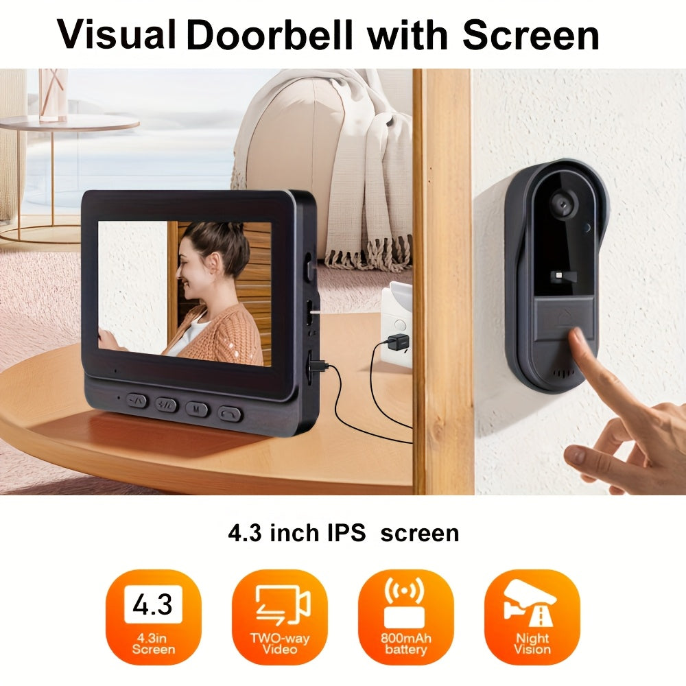 2 dona Video Dveri Qo'ng'irog'i, 4.3 dyuymli ekran, Infraqizil kechasi ko'rish, ikki tomonlama video qo'ng'iroq, uzoq batareya muddati, uy, ofis, do'kon uchun