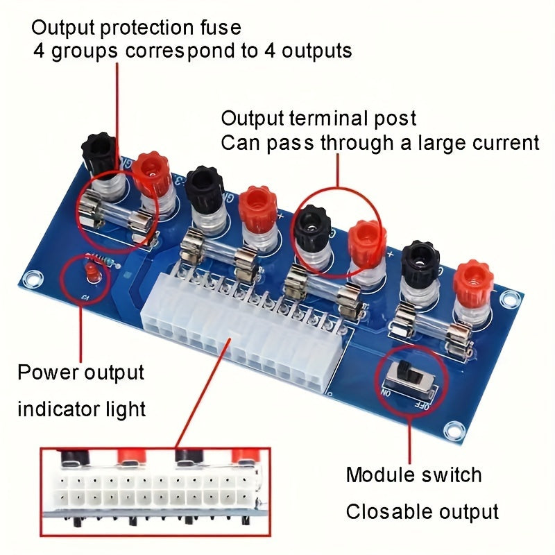 24-Pin ATX Quvvat ta'minoti breakout adapteri stol kompyuterlar uchun, kalit va bir nechta kuchlanish chiqishlari bilan