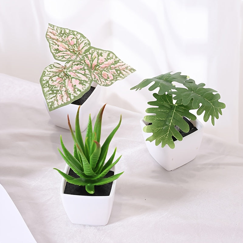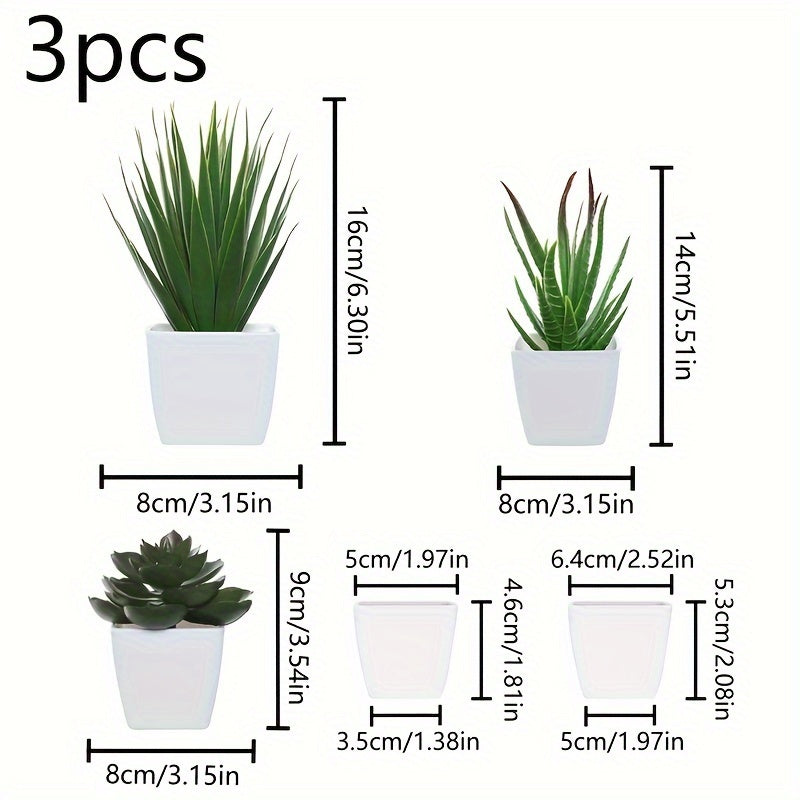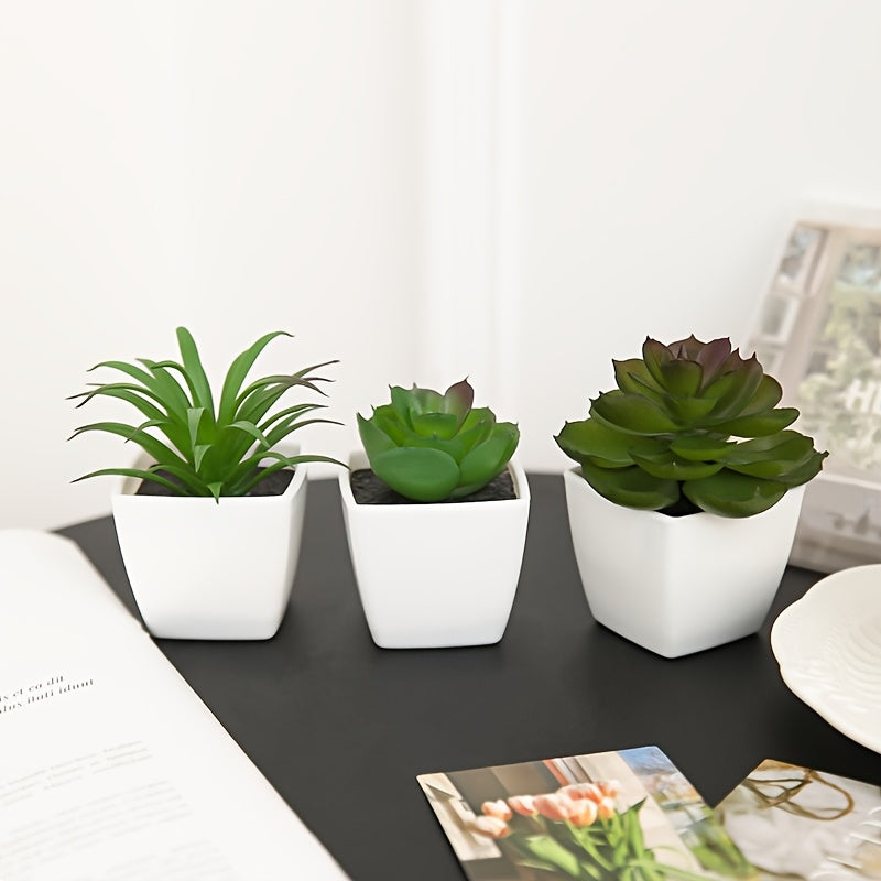 Sun'iy yashil o'simliklar, sukkulentlar, bonsai, uy bezak uchun, 3 ta to'plam