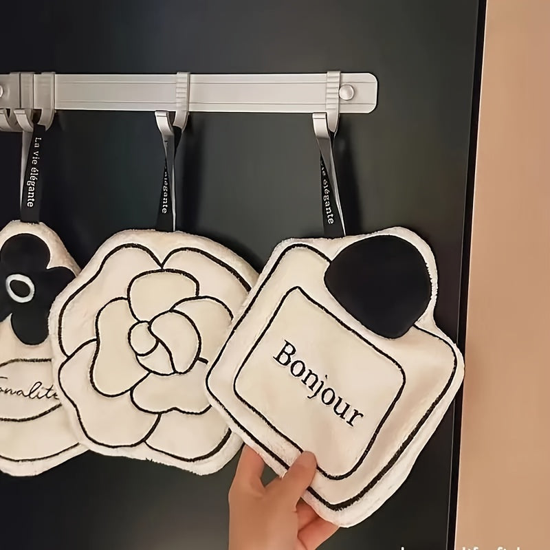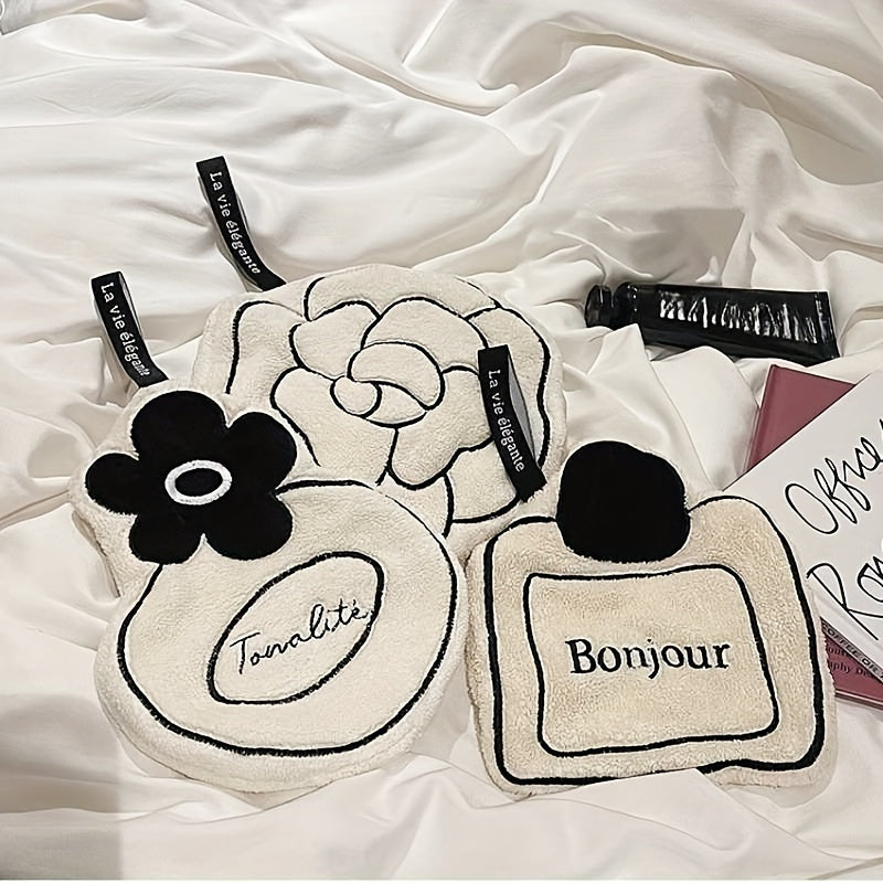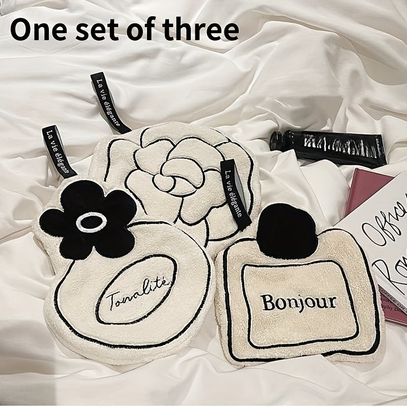 3 ta fransuz super yumshoq kameliya qo'l sochiq, hojatxona bezatish uchun so'ruvchan koral velur material va zamonaviy geometrik naqsh bilan.