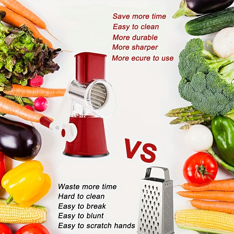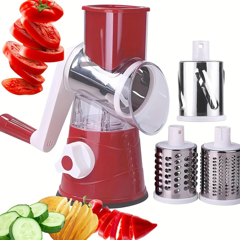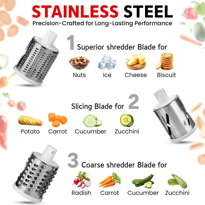 3-in-1 qoʻlda oziq-ovqat maydalagich toʻplami, pichoqchalari almashtiriladigan, pishloq, sabzavot va mevalar uchun