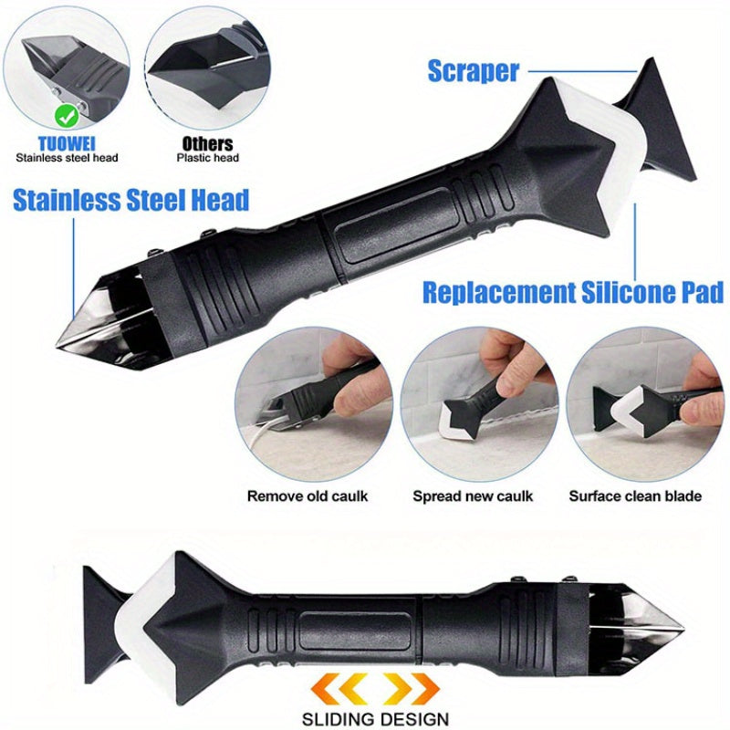 3-in-1 Silikon yopishtiruvchi asbob, zanglamaydigan po'lat boshli, yopishtirish, tozalash va qirqish uchun