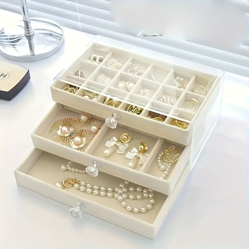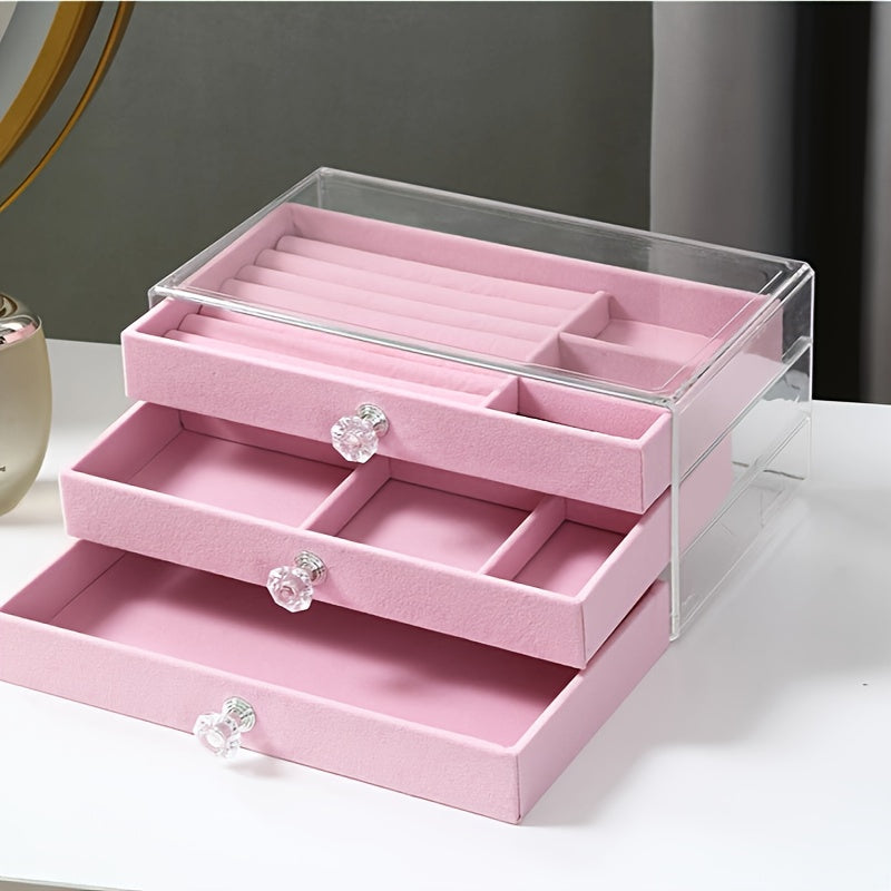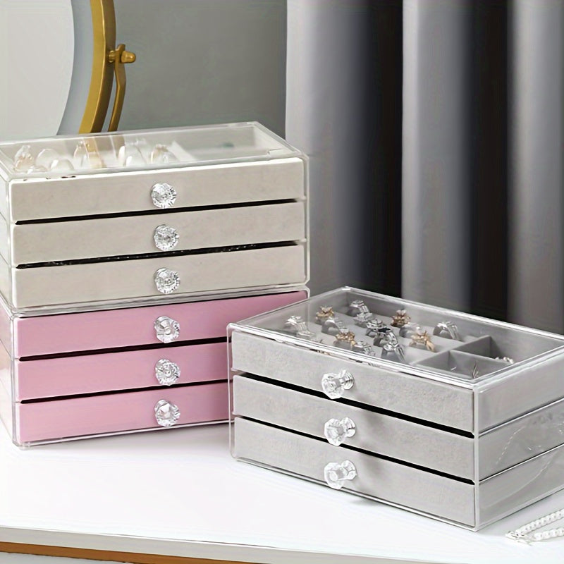 Akril zargarlik buyumlarini tashkil qiluvchi, katta shkaf va flanel qoplamali, quloq taqilishi, uzuklar va uzuklar uchun