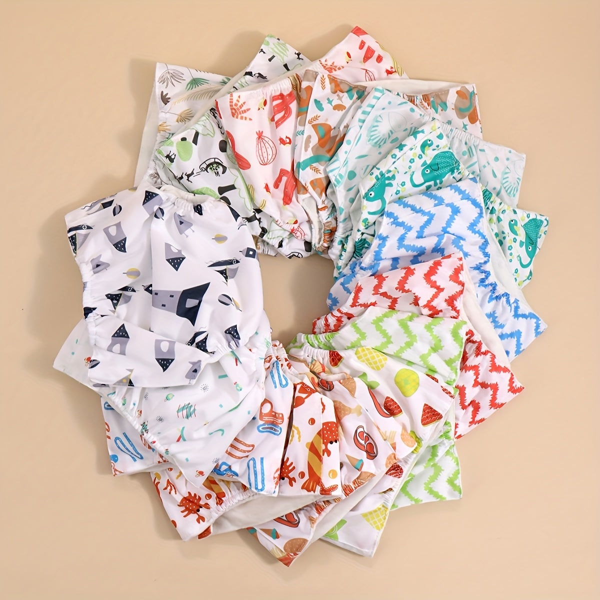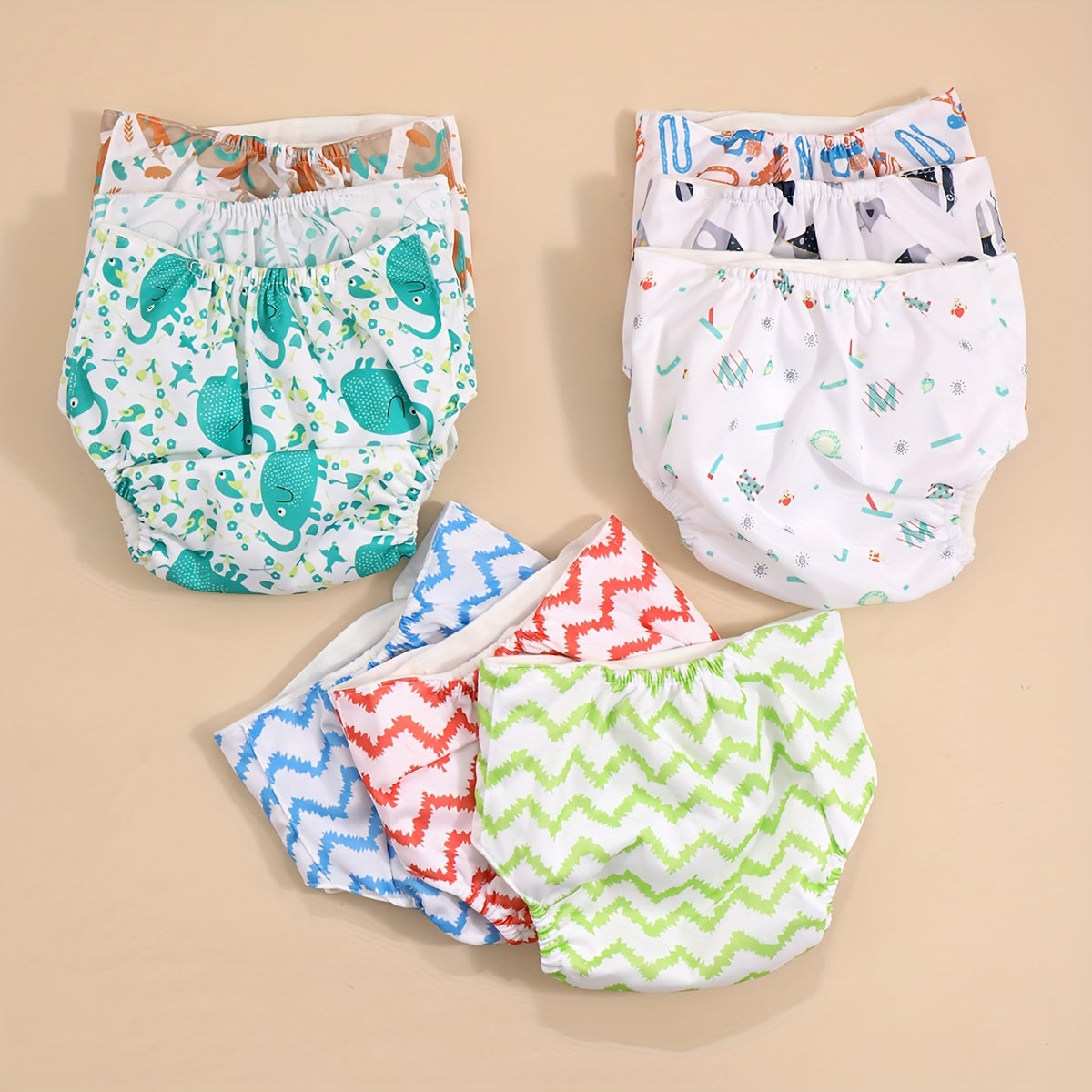 3-to'plam bolalar uchun suv o'tkazmaydigan paxta tagliklari, snaps bilan, yangi tug'ilganlardan 3 yoshgacha