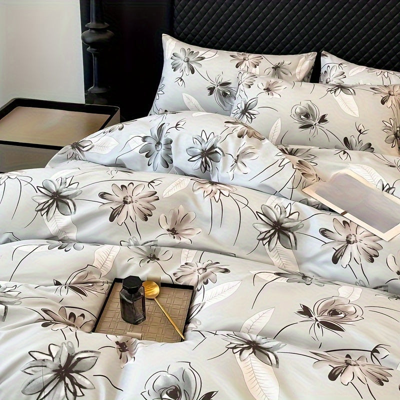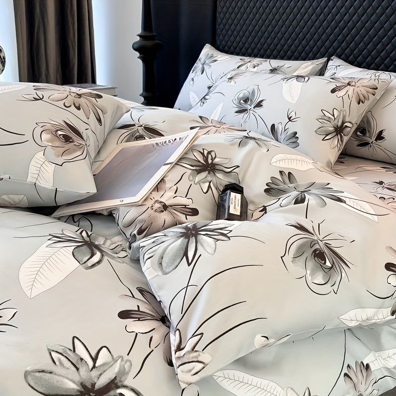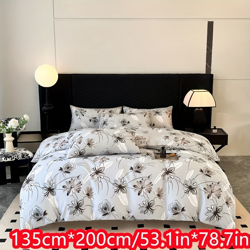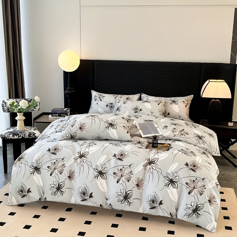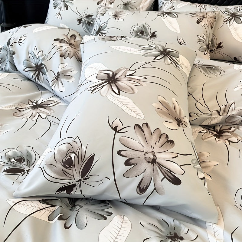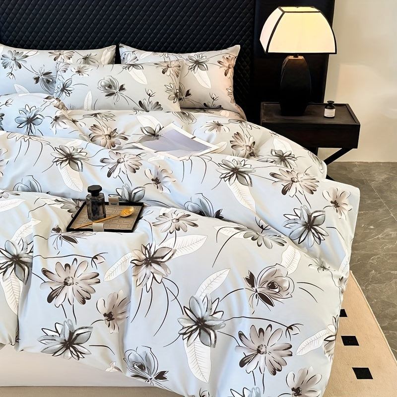 Koʻk rangli gull naqshli yostiq va yostiqchalar bilan toʻplam, 3 ta qopqoq va yostiqchalar, yumshoq polyester