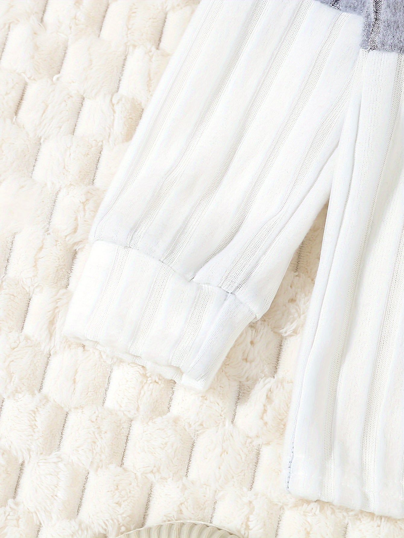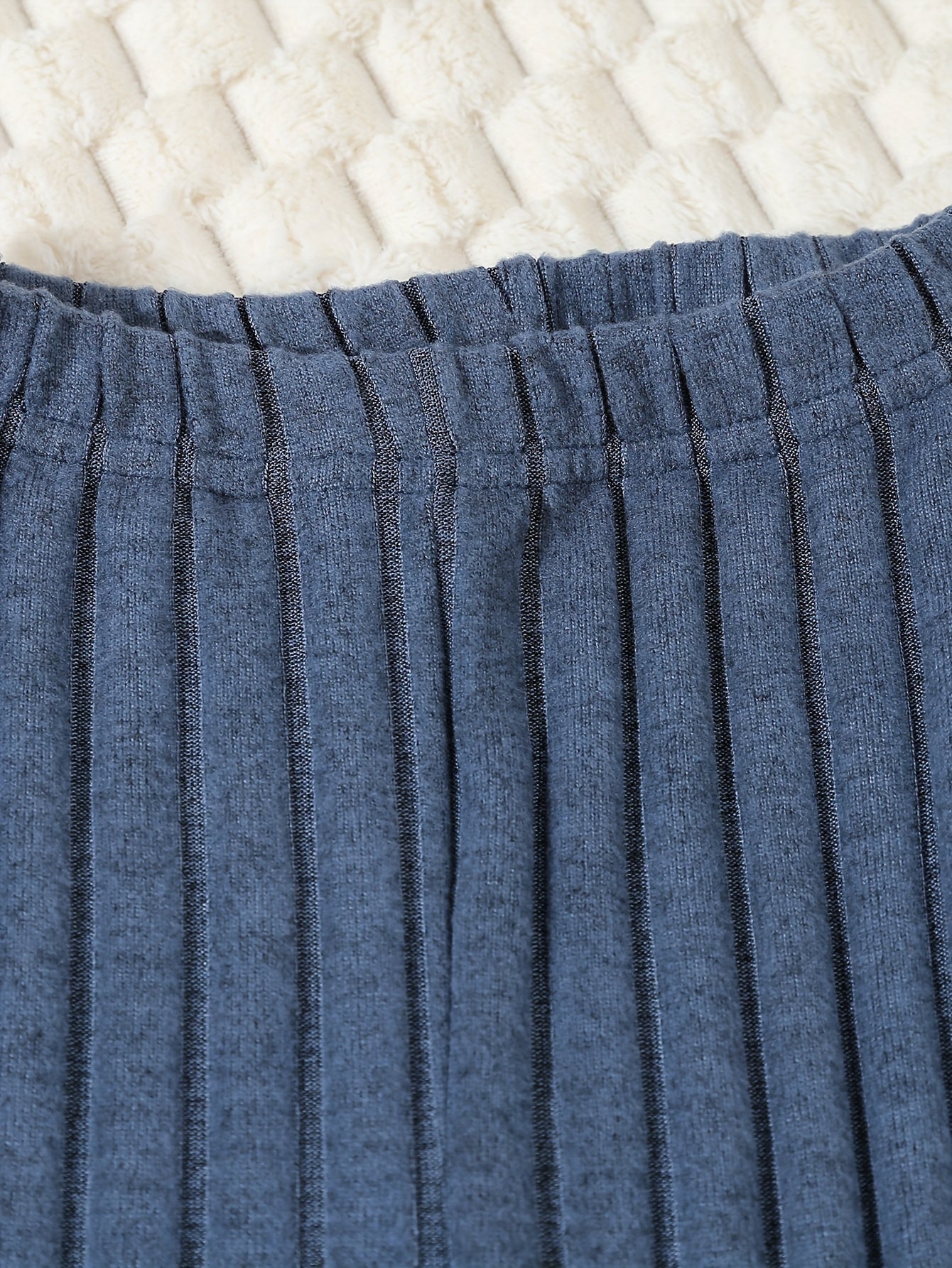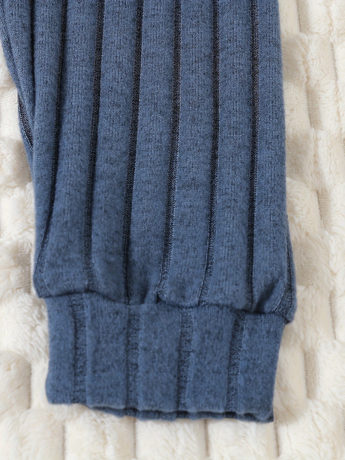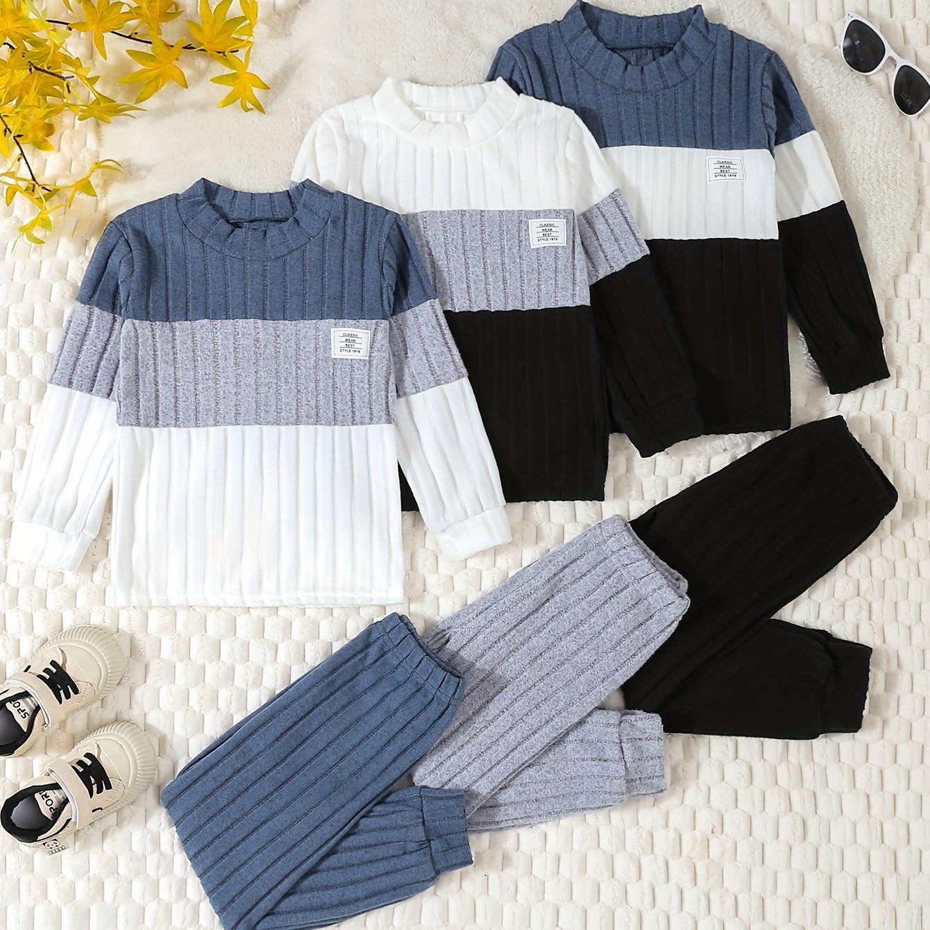 3-qismli o'g'il bolalar uchun rangli blokli ribbed trikotaj to'plami ko'k/oq/qora rangda, yumshoq va cho'ziluvchan uzun qo'lqopli bluzkalar va oddiy shimlar bilan. Har kuni qulaylik uchun mashinada yuvish mumkin. Tashqi faoliyatlar uchun mukammal.
