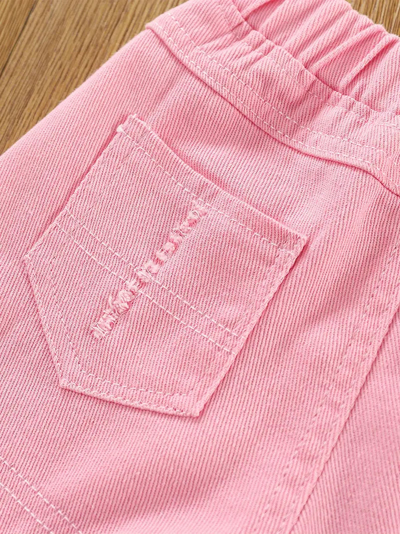 3-qismli qizlar yozgi paxta shortiklar to'plami, tasodifiy yirtilgan denim uslubida, tugma yopilishi bilan, pushti, qora va oq ranglarda. Mashinada yuvish mumkin va ochiq havoda faoliyatlar uchun mukammal.