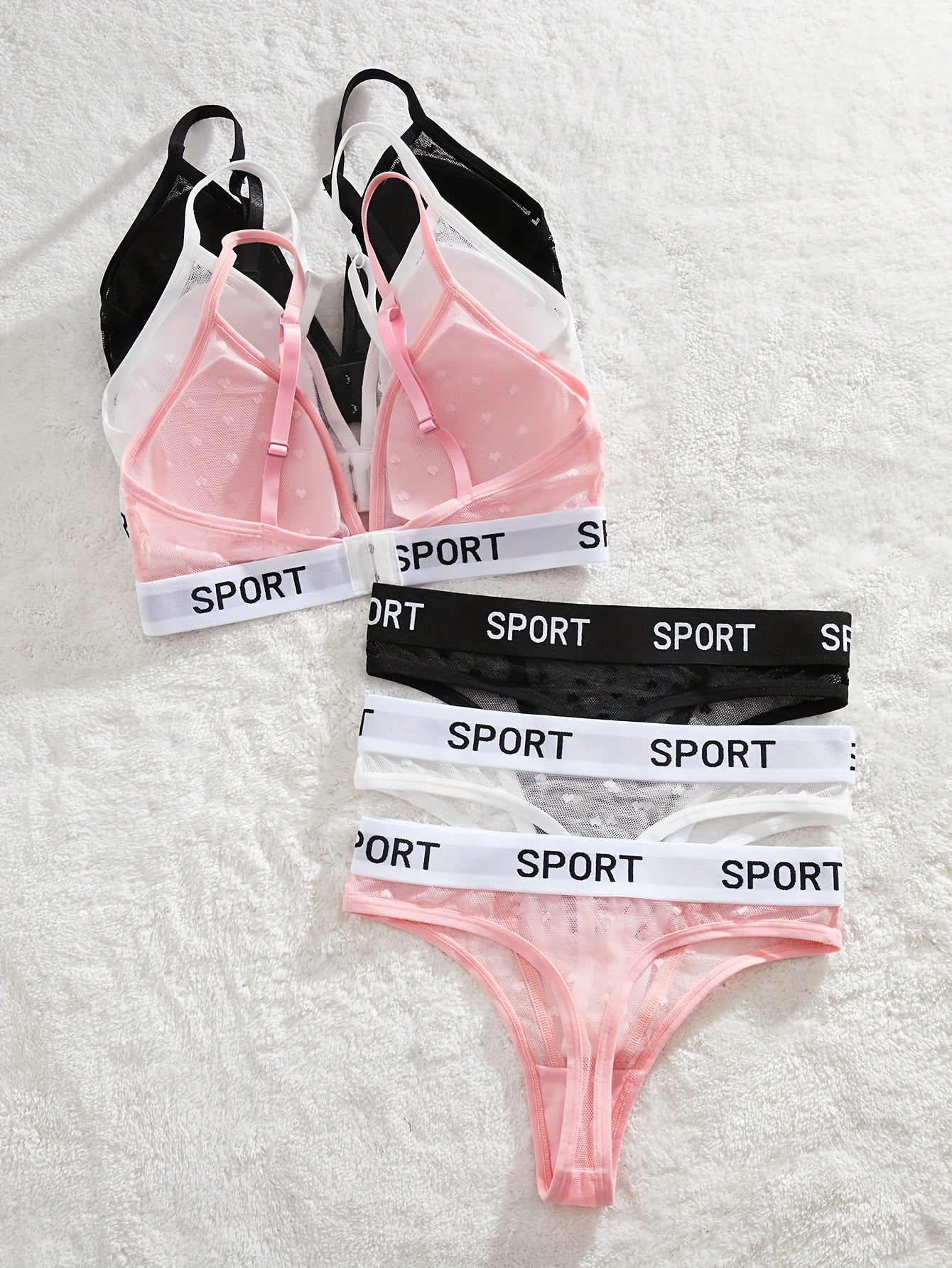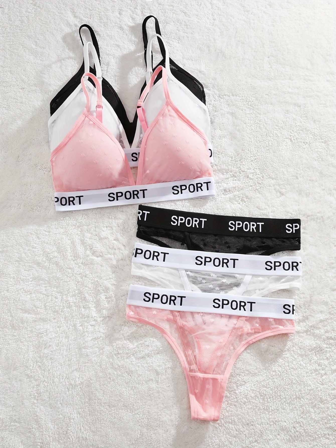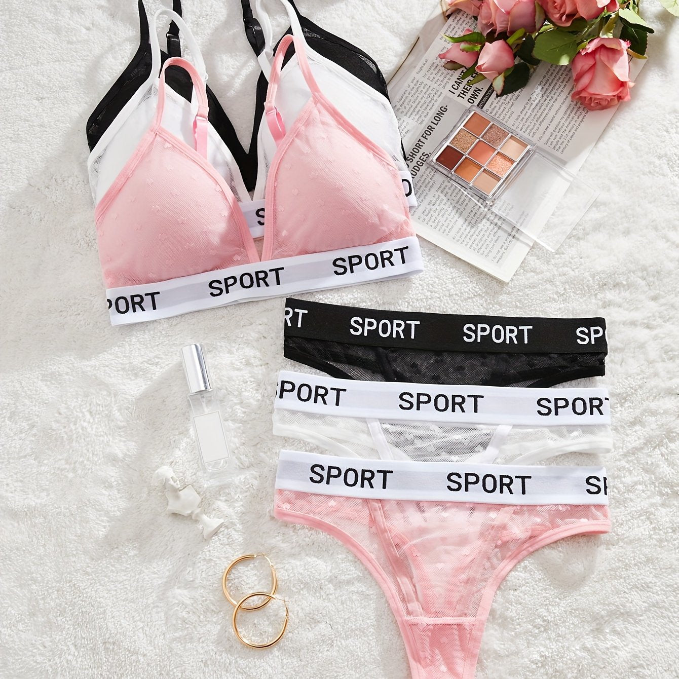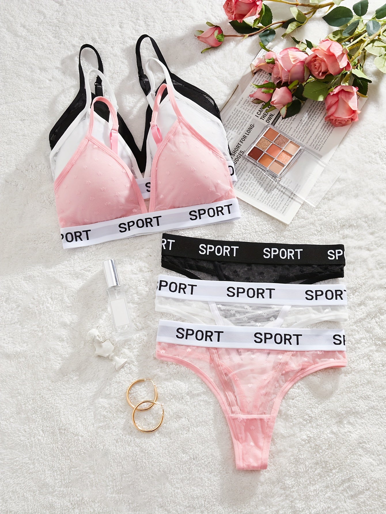 3-qismli harf bosma ichki kiyim to'plamlari; tarmoq thong bilan simsiz brass; ayollar uchun ichki kiyim va ichki kiyimlar.