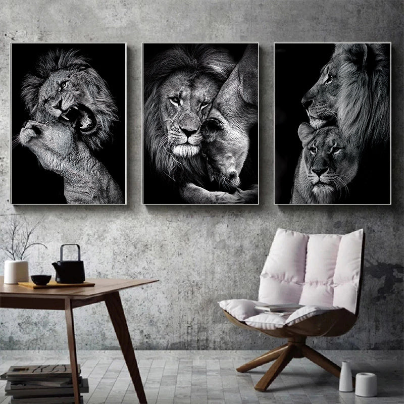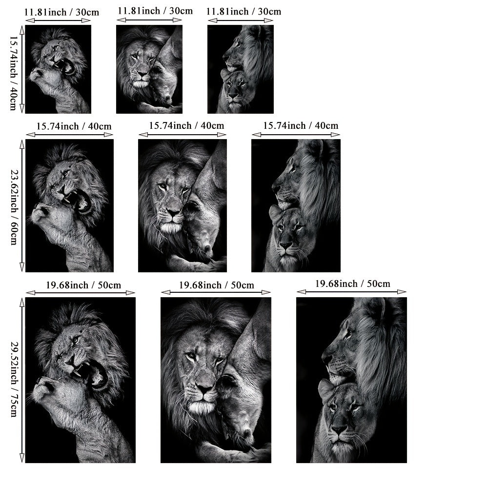 3-ta bo'lakli ramkasiz kanvas devor san'ati, zamonaviy sher oilasi hayvonlar bosmasi bilan yotoq xonasi, mehmonxona va koridor uchun dekor
