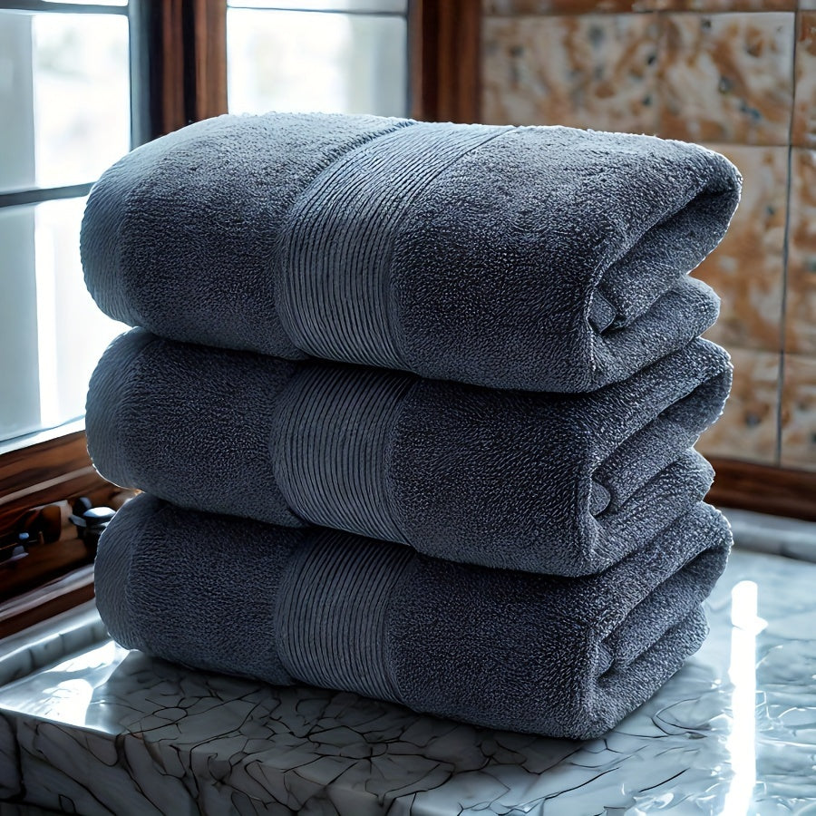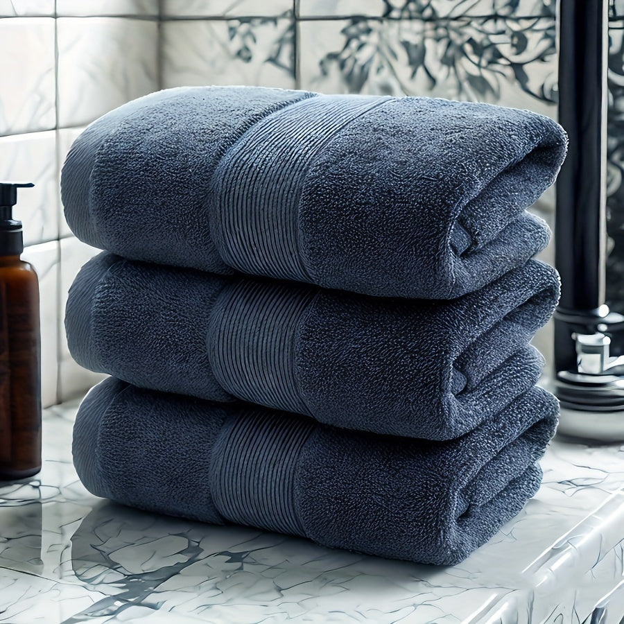 3 ta premium paxta velur sochiq, 35.56 sm x 73.66 sm, yumshoq va singdiruvchi, mehmonxona sifatida qora ko'k, och bej va kulrang. Hammom yoki spa foydalanish uchun ideal.
