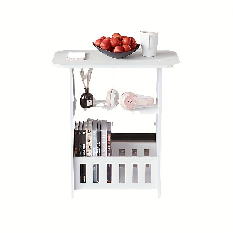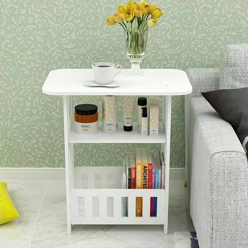 3-qavatli oq yog'och yon stol, yashash xonasi va yotoqxona uchun saqlash javon bilan