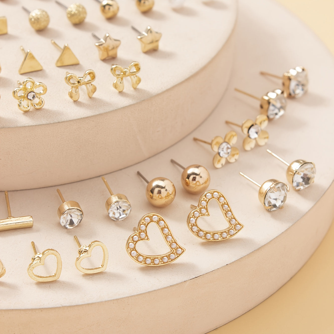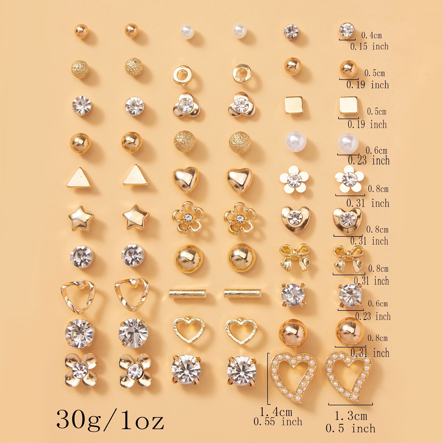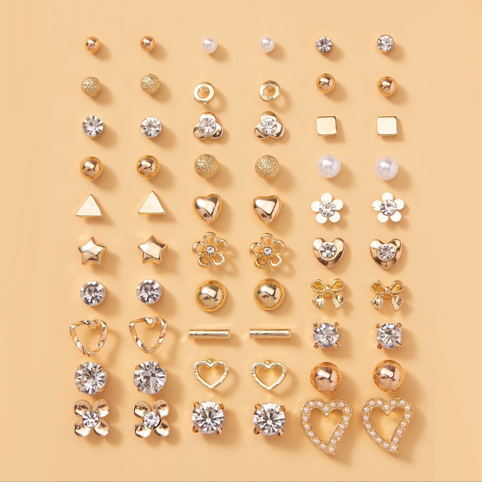 Ayollar uchun 30 ta nafis yurak shaklidagi marjon, kapalak, kristal va oltin quloq taqqichlari