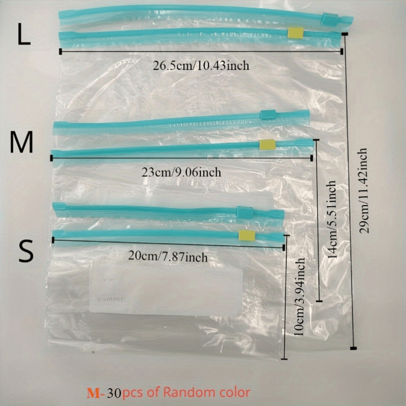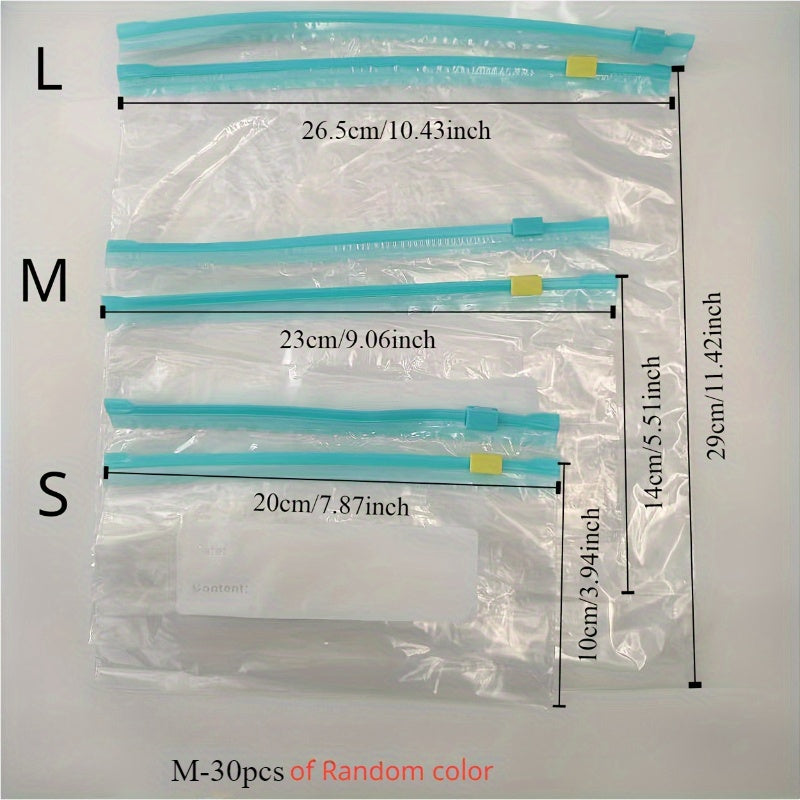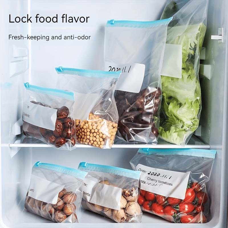 30 ta qayta ishlatiladigan shaffof muzlatgich sumkasi, suyuqlik o'tkazmaydigan PET, oziq-ovqat saqlash va yopish uchun