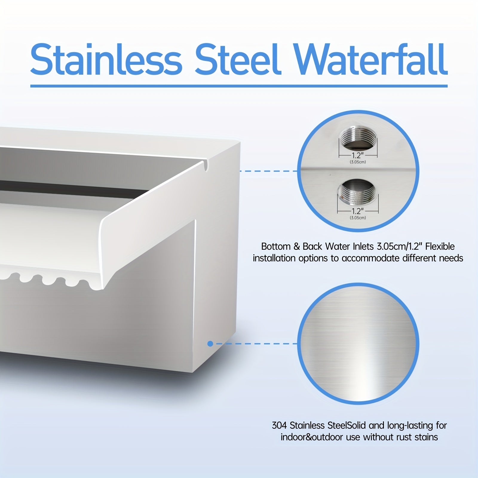 304 zanglamaydigan po'latdan yasalgan suv toshqini uchun hovuzlar va bog'lar uchun, yoritgichsiz, turli o'lchamlarda