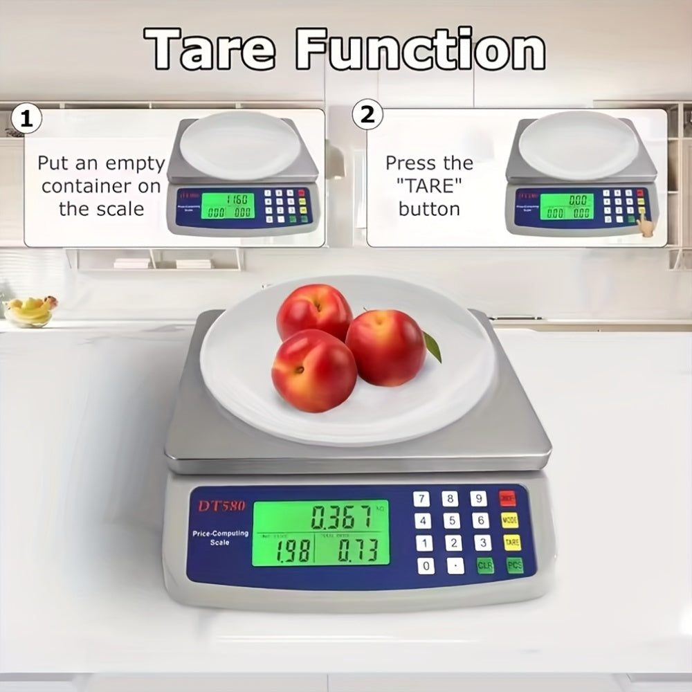 30kg raqamli oshxona tarozi LCD displey bilan, Tare funksiyasi, oziq-ovqat bilan aloqa qilish uchun xavfsiz plastmassa