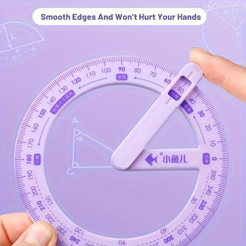Matematika va geometriya uchun 360 darajaga buriladigan protractor to'plami, talabalar va o'qituvchilar uchun ta'lim vositasi