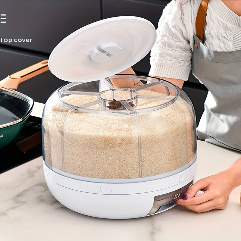6 bo'limli va avtomatik dozatorli 360 daraja aylanadigan don saqlash qutisi