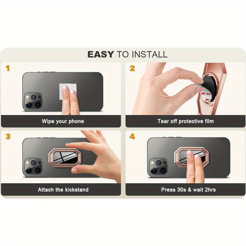 360-Daraja Aylanish Halqasi Telefon Turgichi - Metall, Ruxsor Qotishma, iPhone/Samsung Galaxy modellari uchun yopishqoq o'rnatish. Barmoq Turgichi. Mustahkam.