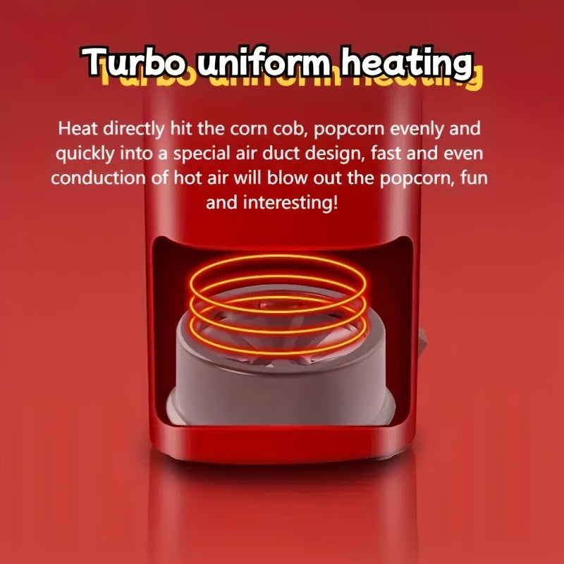 360° Isitgichli Elektr popcorn tayyorlagich, yog‘siz, oson foydalanish, uy sharoitida tayyorlangan makkajo‘xori yong‘oqchalari, qizil, kompakt