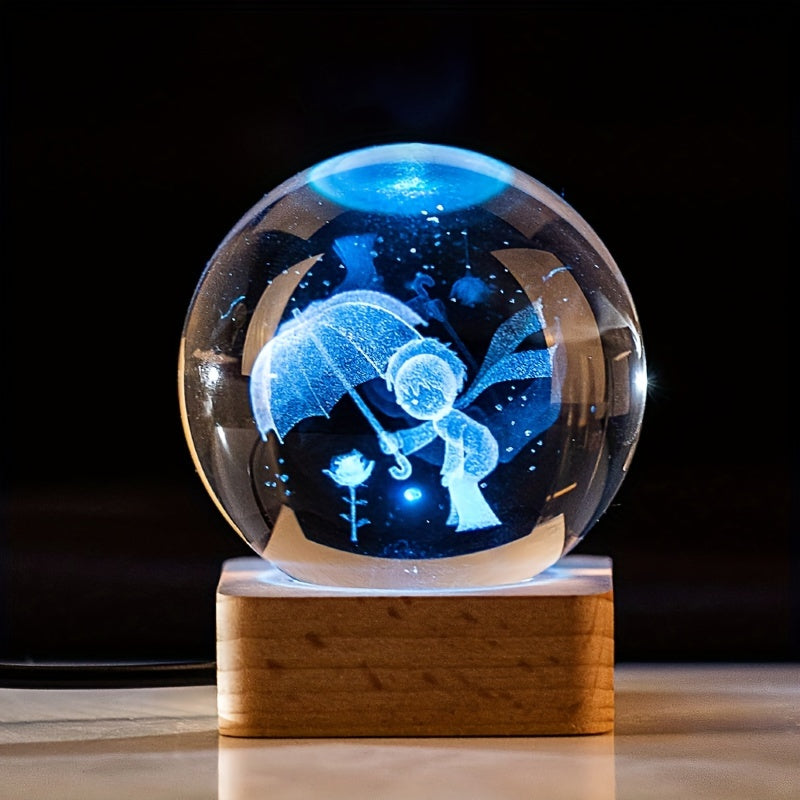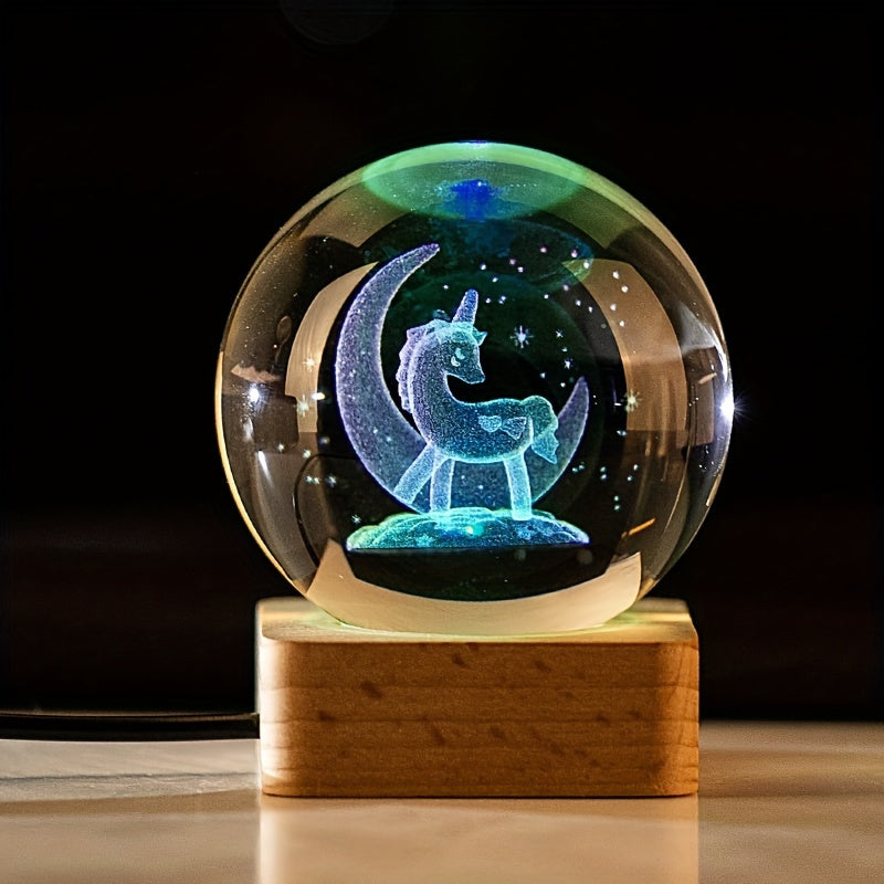 3D Kristall sharli kechqurun chiroq LED USB stol dekoratsiyasi Klover karuseli, Dandelion, Unicornni tanlang