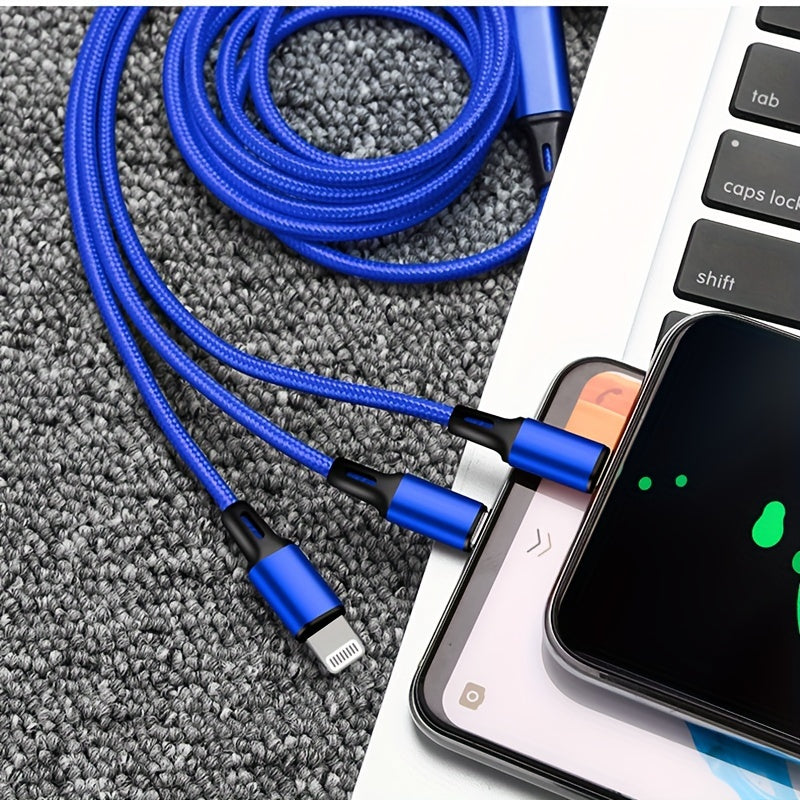 3-in-1 Naylon Zaryadlash Kabeli iPhone Type-C Micro USB Ma'lumotlarni Sinxronlashtirish va Quvvat