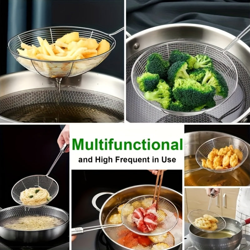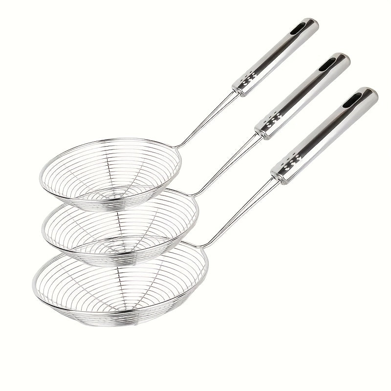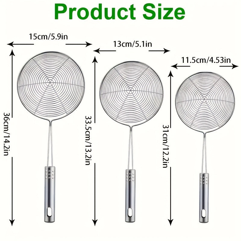 3 dona zanglamaydigan po'latdan yasalgan tarakcha to'plami, uzun tutqichlar bilan, oziq-ovqat uchun xavfsiz skimmer qoshiq
