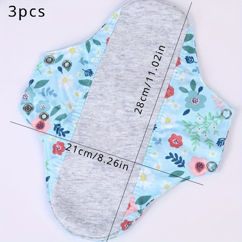 3 dona qayta ishlatiladigan Grafen gigiena padlari ayollar uchun nafas oladigan paxta gullik naqshlar bilan inkontinensiya, homiladorlik, keksa uchun