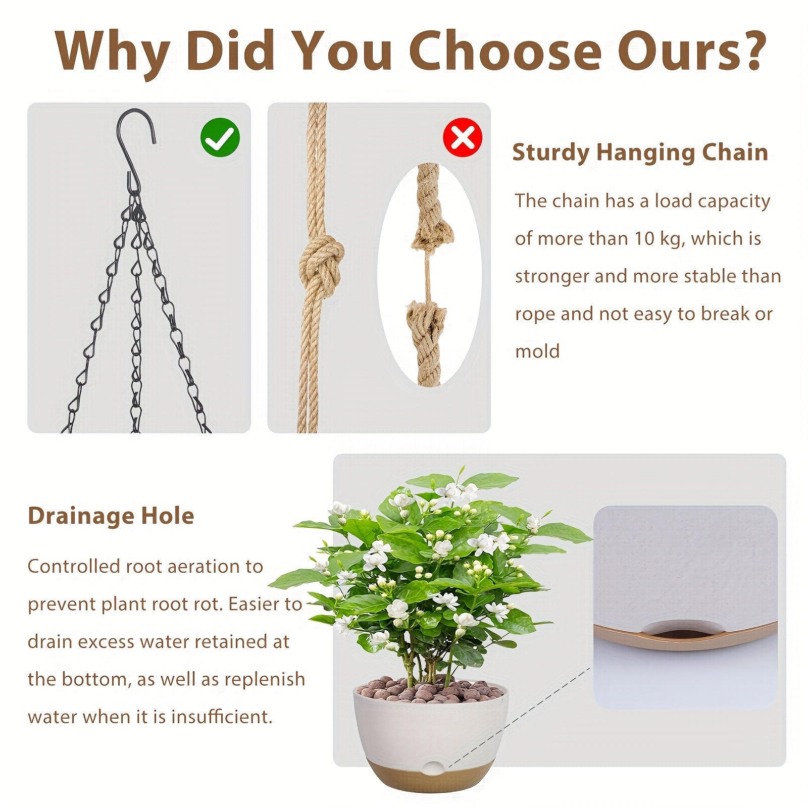 3 dona osilgan gulqopqog'i to'plami, 20.32cm katta sig'imli drenaj zanjiri, olib tashlanadigan idish, ichki va tashqi bog'lar, balkon bezaklari