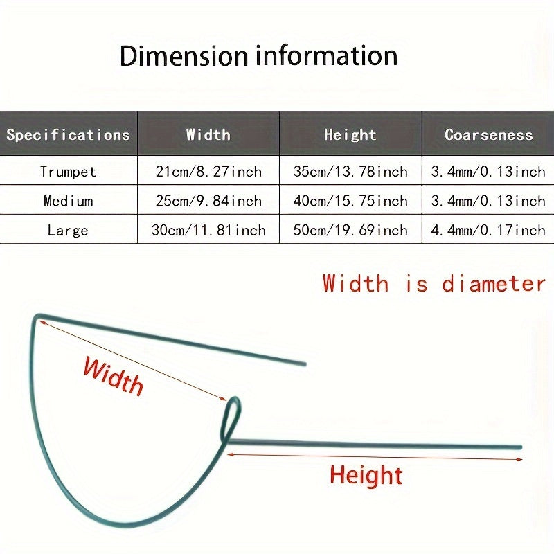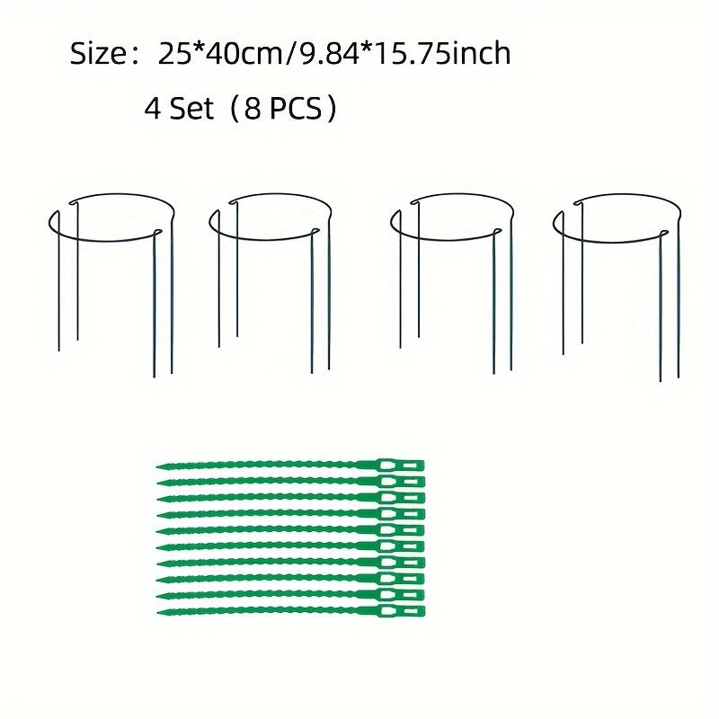 4/8 o'simlikni qo'llab-quvvatlash ustunlari, atirgul, peoniya, pomidor va gortensiya uchun metall yarim doira bog' qo'llab-quvvatlashlari. Ichki va tashqi gullarni qo'llab-quvvatlash ikki o'lchamda: 21.01 sm x 35.0 sm va 24.99 sm x 40.01 sm.
