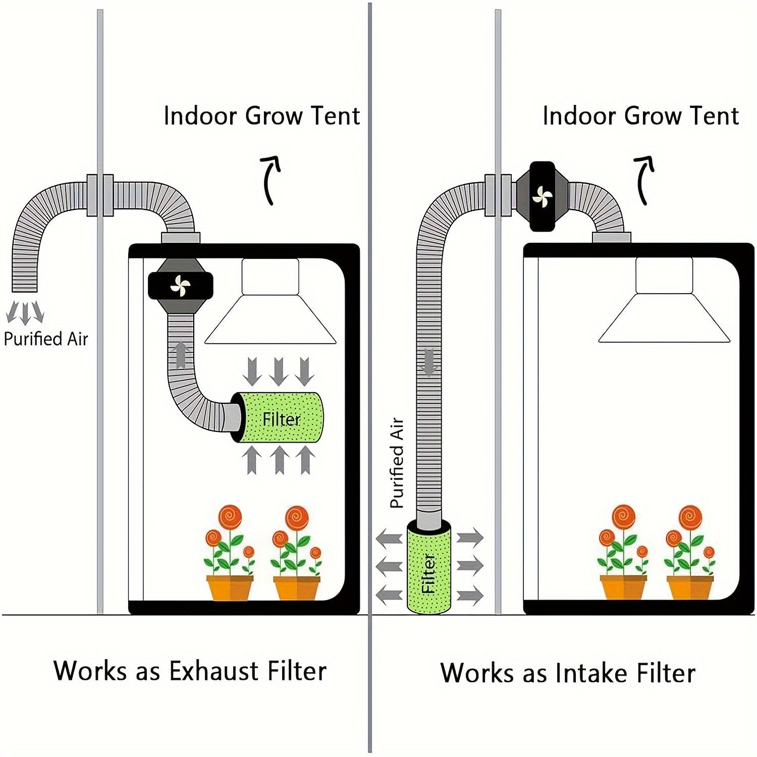 4 dyuymli Virgin Charcoal havo filtri, hidni nazorat qilish uchun ventilyatorlar va chodirlarga mos, teskari flanjli